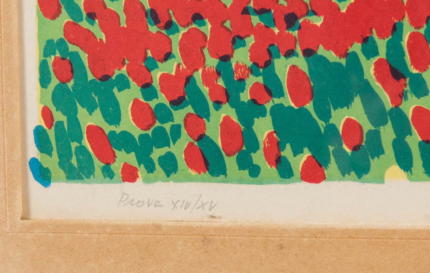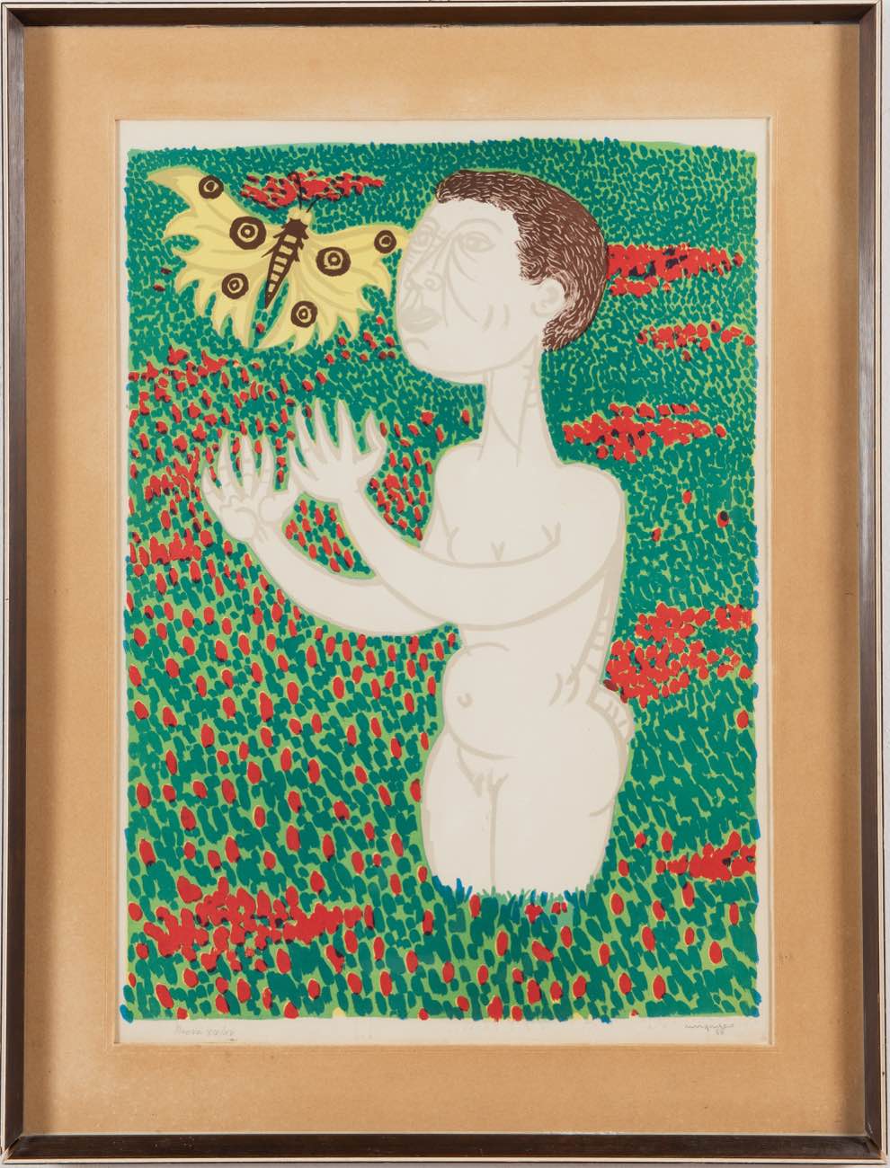 Giuseppe Migneco (Messina 1903 - Milano 1997), “Caccia alle farfalle” Litografia a colori su carta, firmata in basso a destra Migneco, numero di tiratura in basso a sinistra prova XIV/XV, H cm 68x48