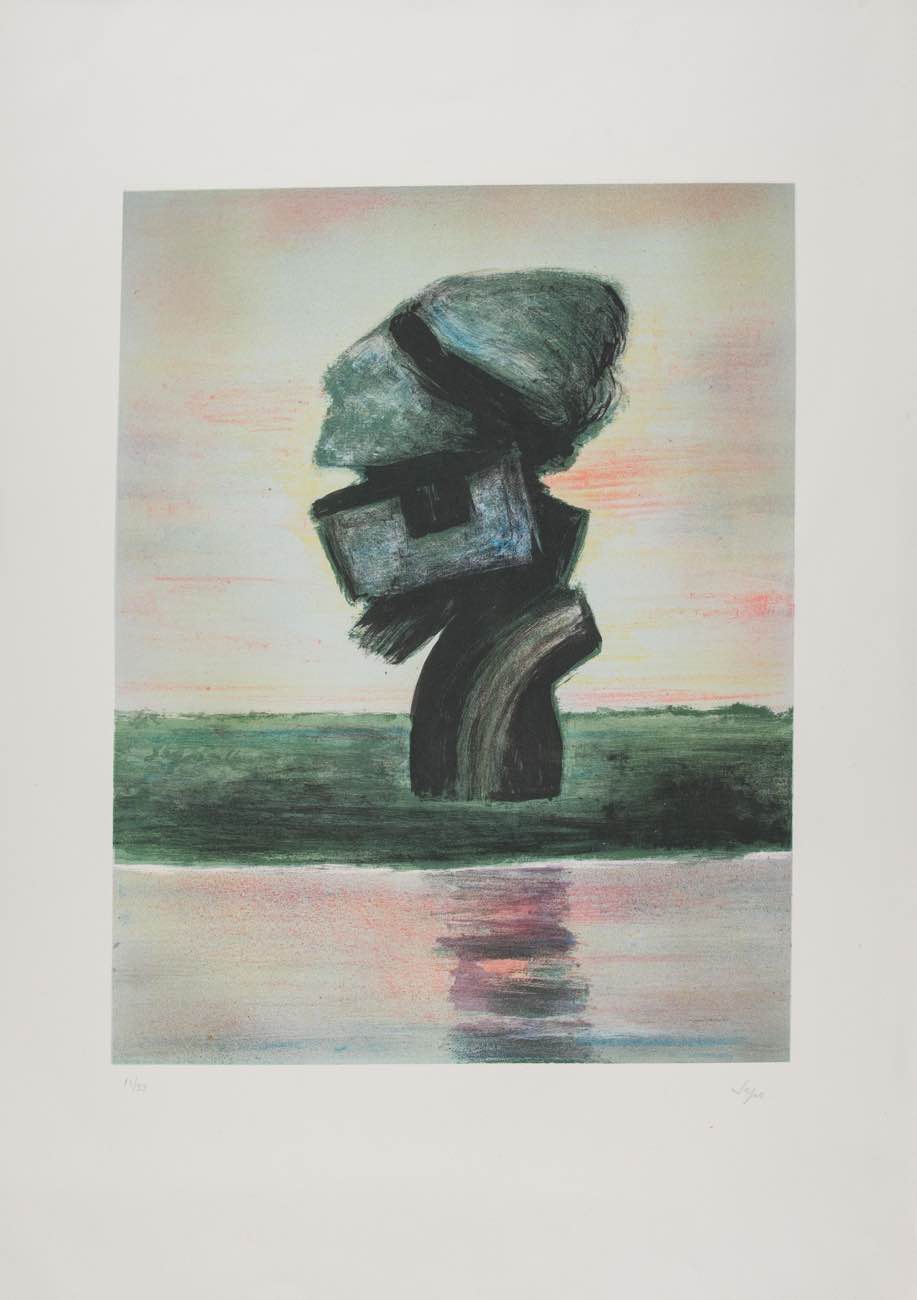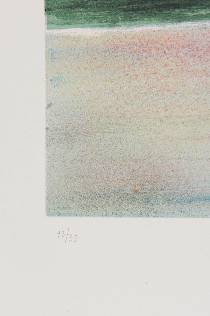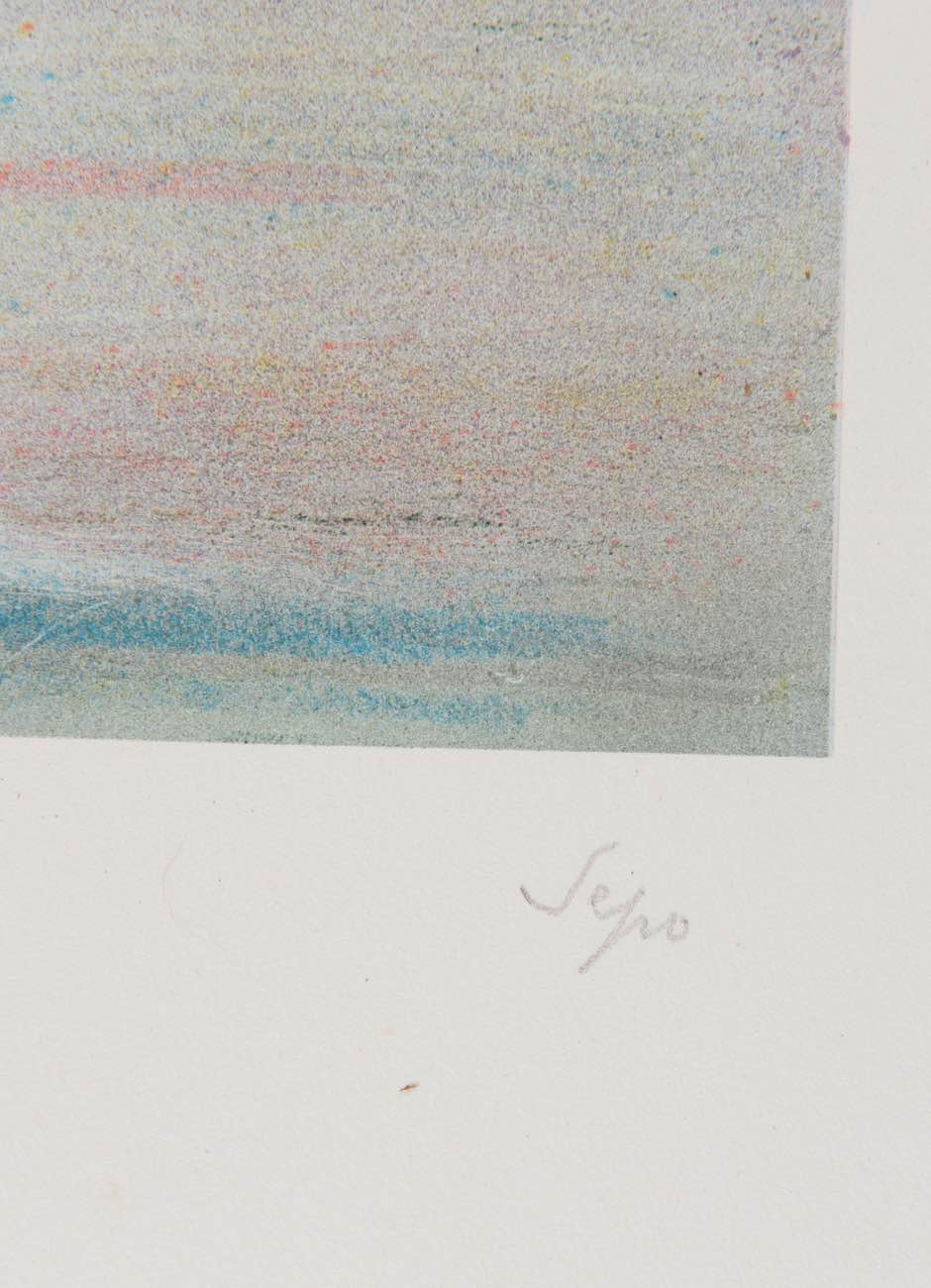 Severo Pozzati detto Sepo (Comacchio 1895 - Bologna 1983), “Lingua di Terra”. Serigrafia a colori su carta,firmata in basso a destra Sepo, numero di tiratura in basso a sinistra 13/99, Lastra H cm 65x50 - Foglio H cm 71x100