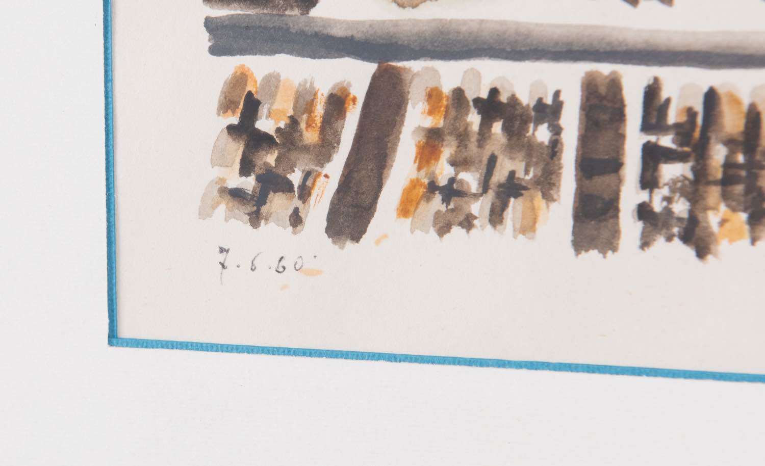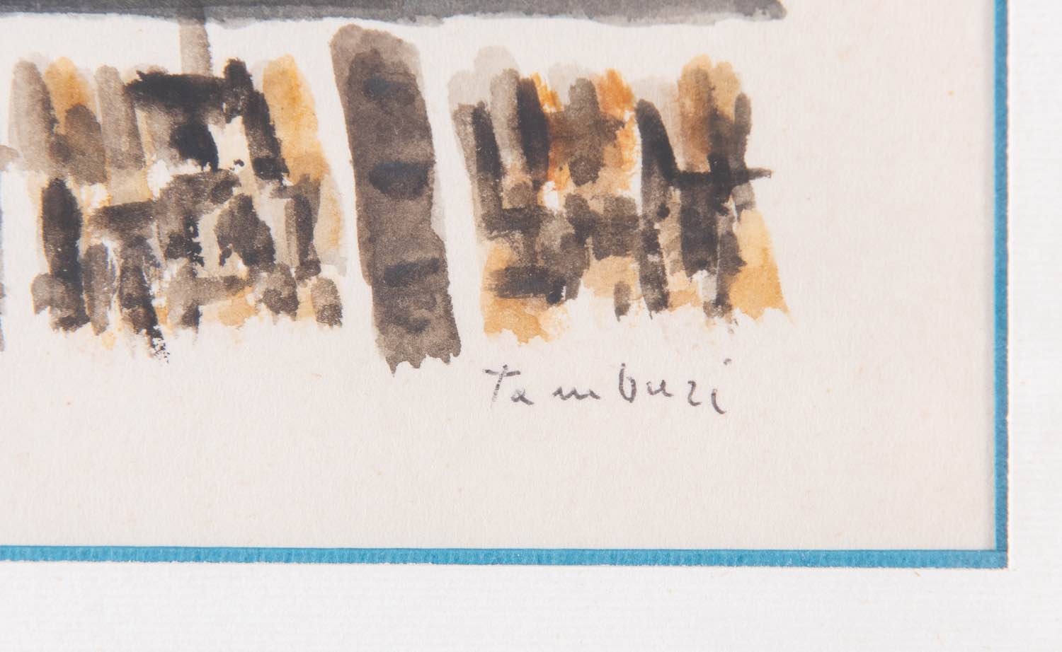 Orfeo Tamburi (Jesi 1910 - Parigi 1994), “Veduta di città”, 1960. Acquerello su carta, firmato in basso a destra Tamburi, datato in basso a sinistra 7.6.60, H cm 19x23 Opera accompagnata da certificato di autenticità su fotografia a firma Orfeo Tamburi.