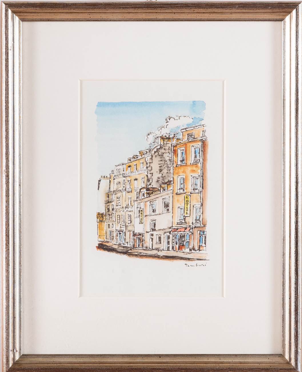 Orfeo Tamburi (Jesi 1910 - Parigi 1994), “Strada di Parigi”. Acquerello su carta, firmato in basso a destra Tamburi, H cm 22x15 Opera accompagnata da certificato di autenticità su fotografia con timbro firmato O. Tamburi.