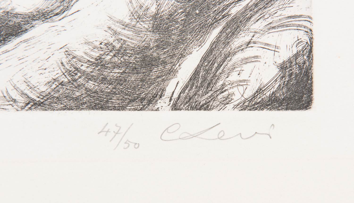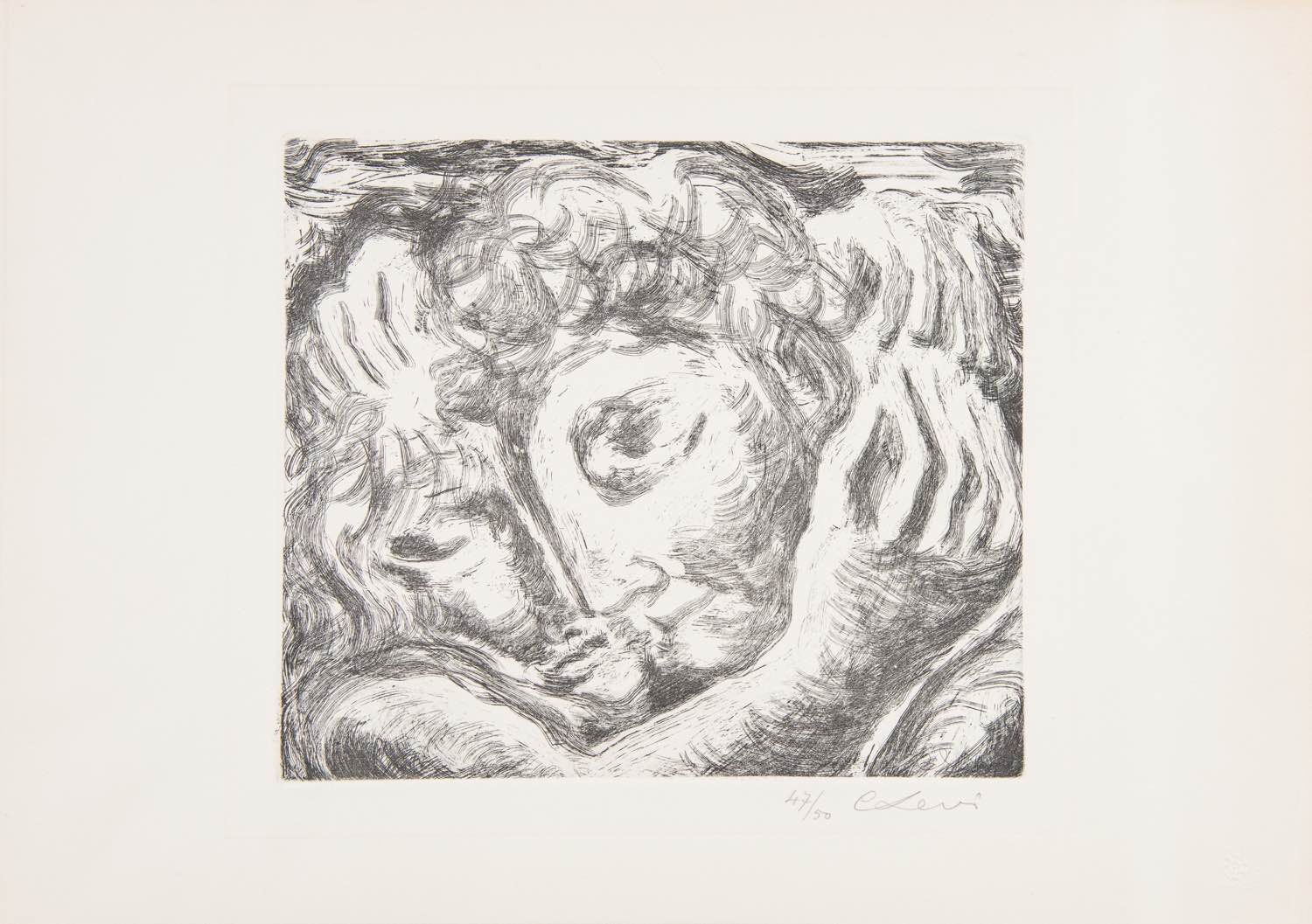 Carlo Levi (Torino 1902 - Roma 1975), “Gli amanti”. Acquaforte su carta, numero di tiratura e firma in basso a destra 47/50 C. Levi, timbro a secco Alberto Caprini Stampatore in Roma in basso a desta, Lastra H cm 24x28 - Foglio H cm 35x50