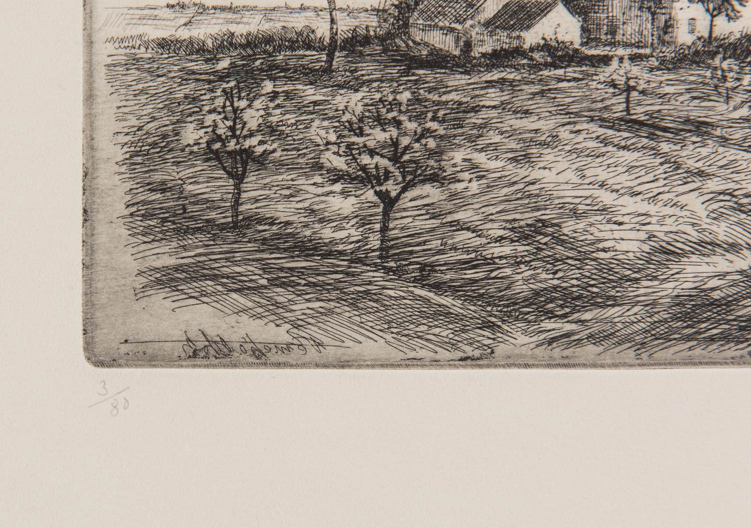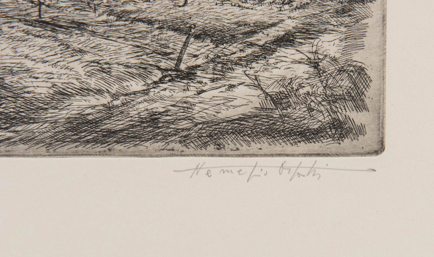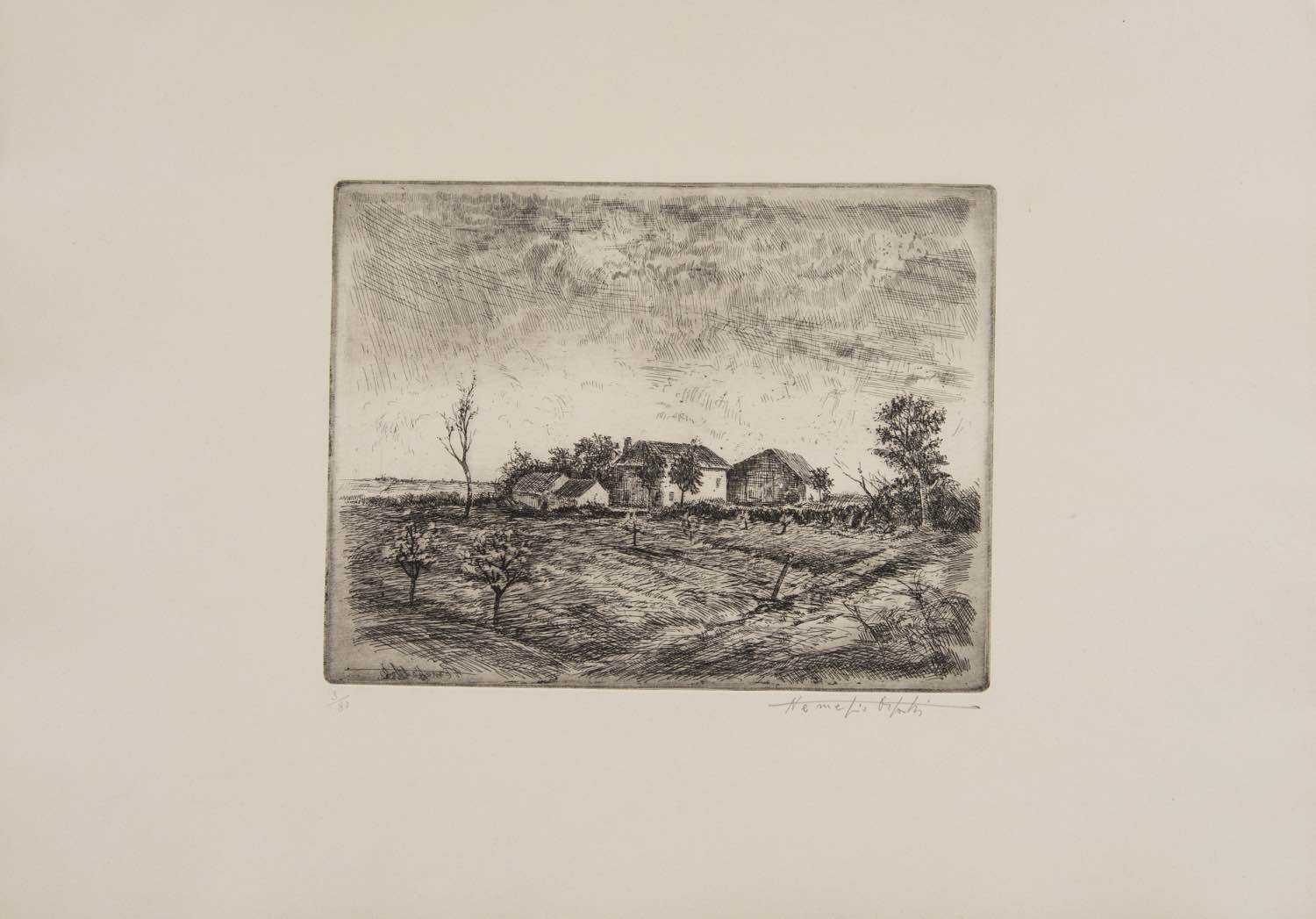 Nemesio Orsatti (Ferrara1912 - 1988), “Paesaggio”. Incisione su carta, firmata in basso a destra Nemesio Orsatti, numero di tiratura in basso a sinistra 3/80, Lastra H cm 19x25 - Foglio H cm 36x50
