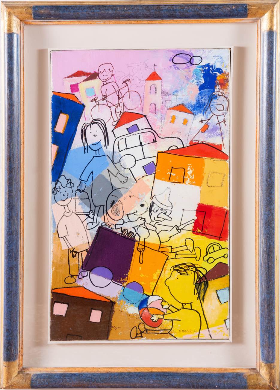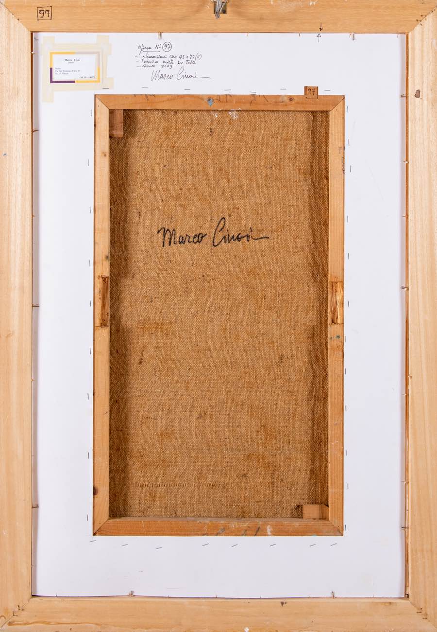 Marco Civai (Panzano in Chianti 1950), “Senza titolo”, 2003. Tecnica mista su tela, firmato in basso a destra Marco Civai, al retro reca firma Marco Civai e iscrizione con numero di opera 97 e data 2003, H cm 75x45
