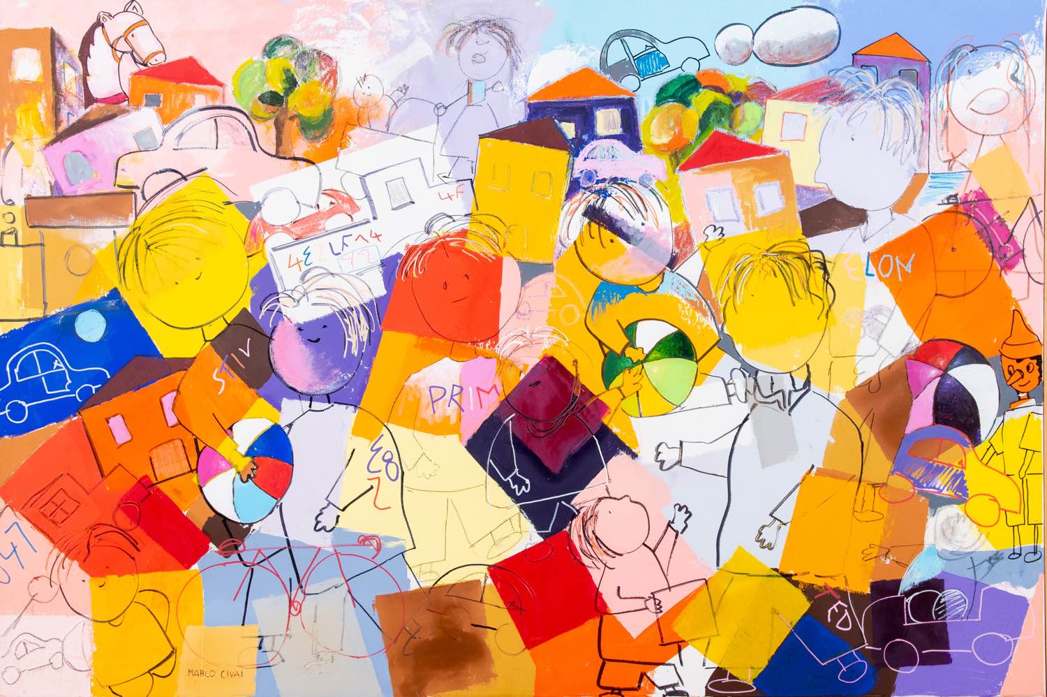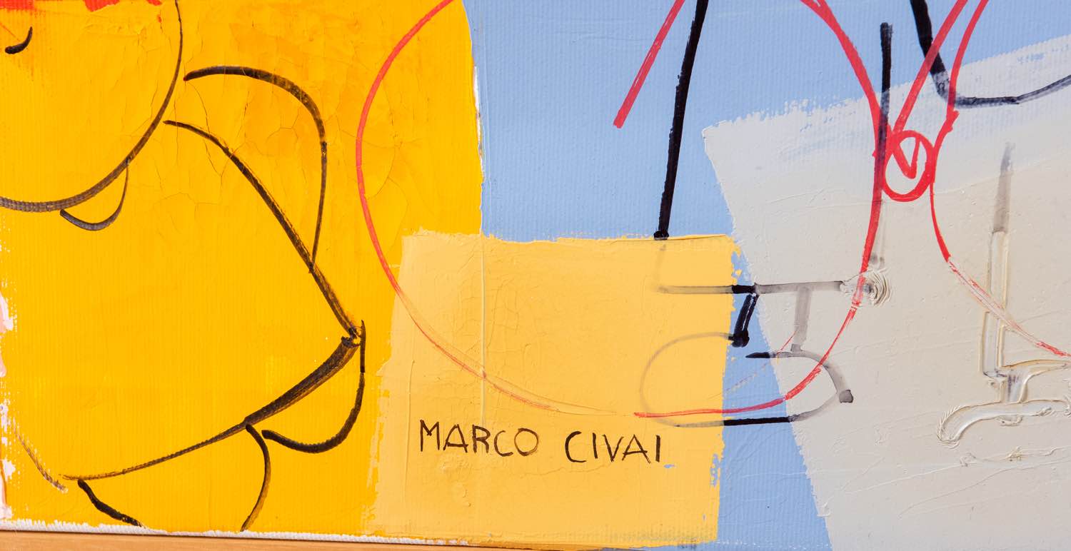 Marco Civai (Panzano in Chianti 1950), “Senza titolo”, 2003. Tecnica mista su tela, firmato in basso a sinistra Marco Civai, al retro reca firma Marco Civai, H cm 80x120