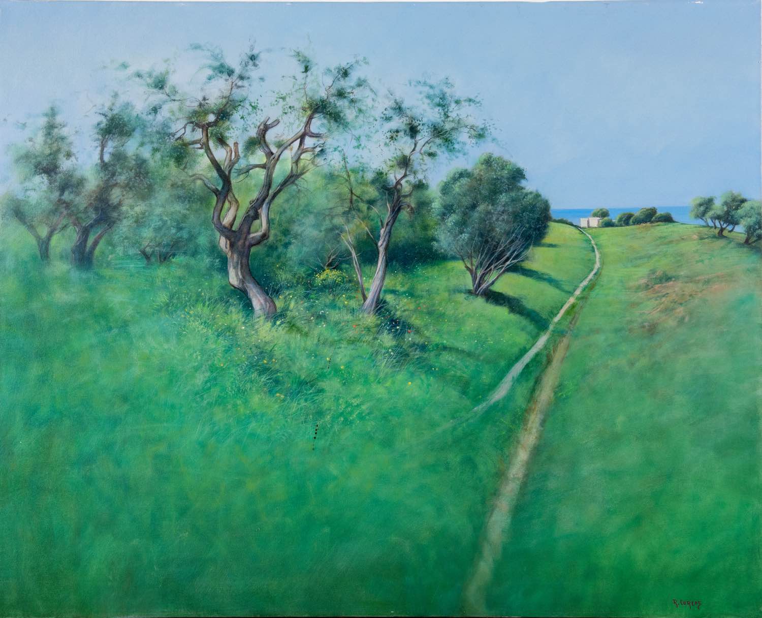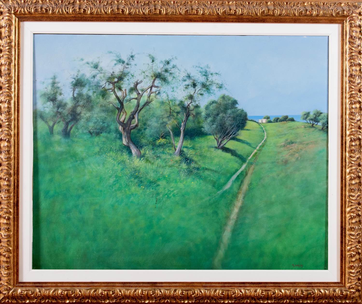 Renzo Corcos (XX secolo), “Montenero”. Olio su tela, firmato in basso a sinistra R. Corcos, al retro titolo e firma ‘Montenero’ (Livorno) Renzo Corcos, H cm 80x100
