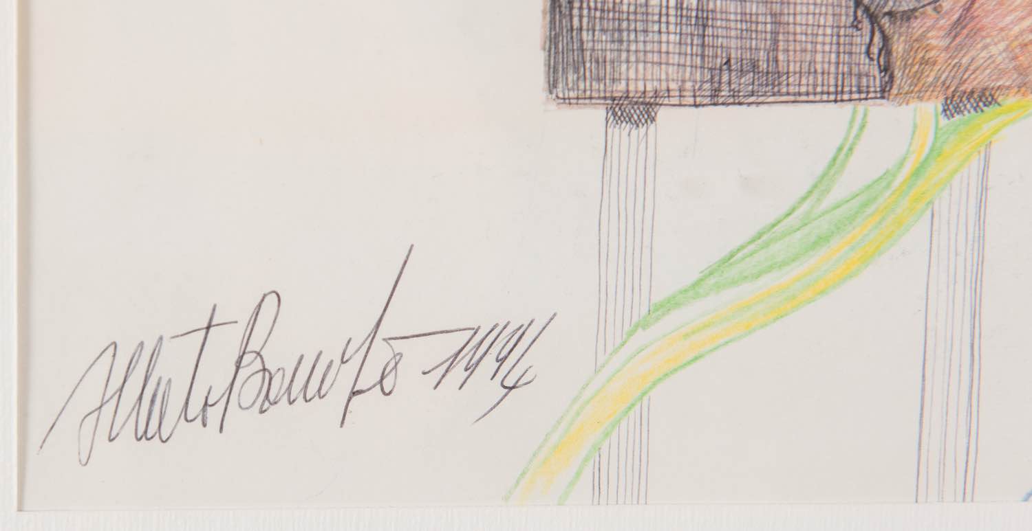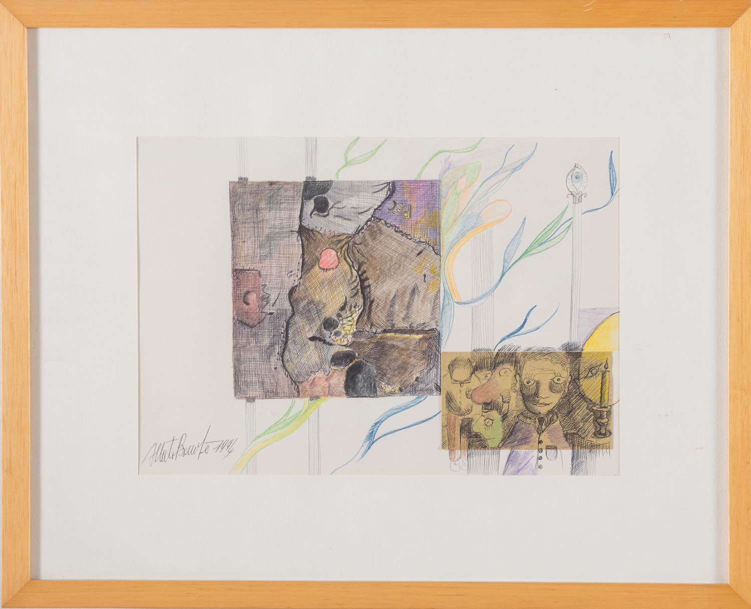 Pittore del XX secolo, “Senza titolo”, 1994. Tecnica mista su carta con applicazioni a collage, firmato in basso a sinistra e datato 1994, iscrizione al retro, H cm 24x34