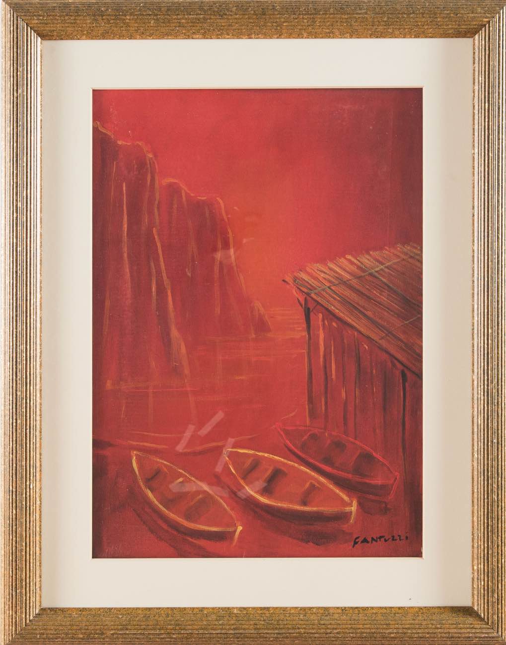 Eliano Fantuzzi (Modena 1909 - Verona 1987), “Barche ormeggiate”.