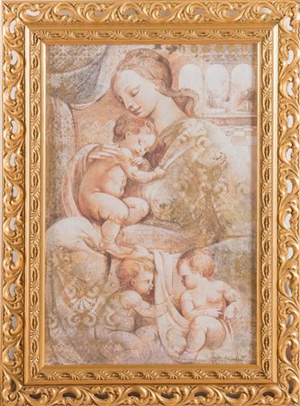 Elvio Marchionni (Spello 1944), “La Maternità”. Serigrafia su tela ritoccata dall’artista, firma in basso a destra Marchionni, numero di tiratura in basso a sinistra 59/250 retouche, H cm 69.5x45.5 Opera accompagnata da Certificato di Autenticità dell’artista e Re d’Italia Art, 2013.