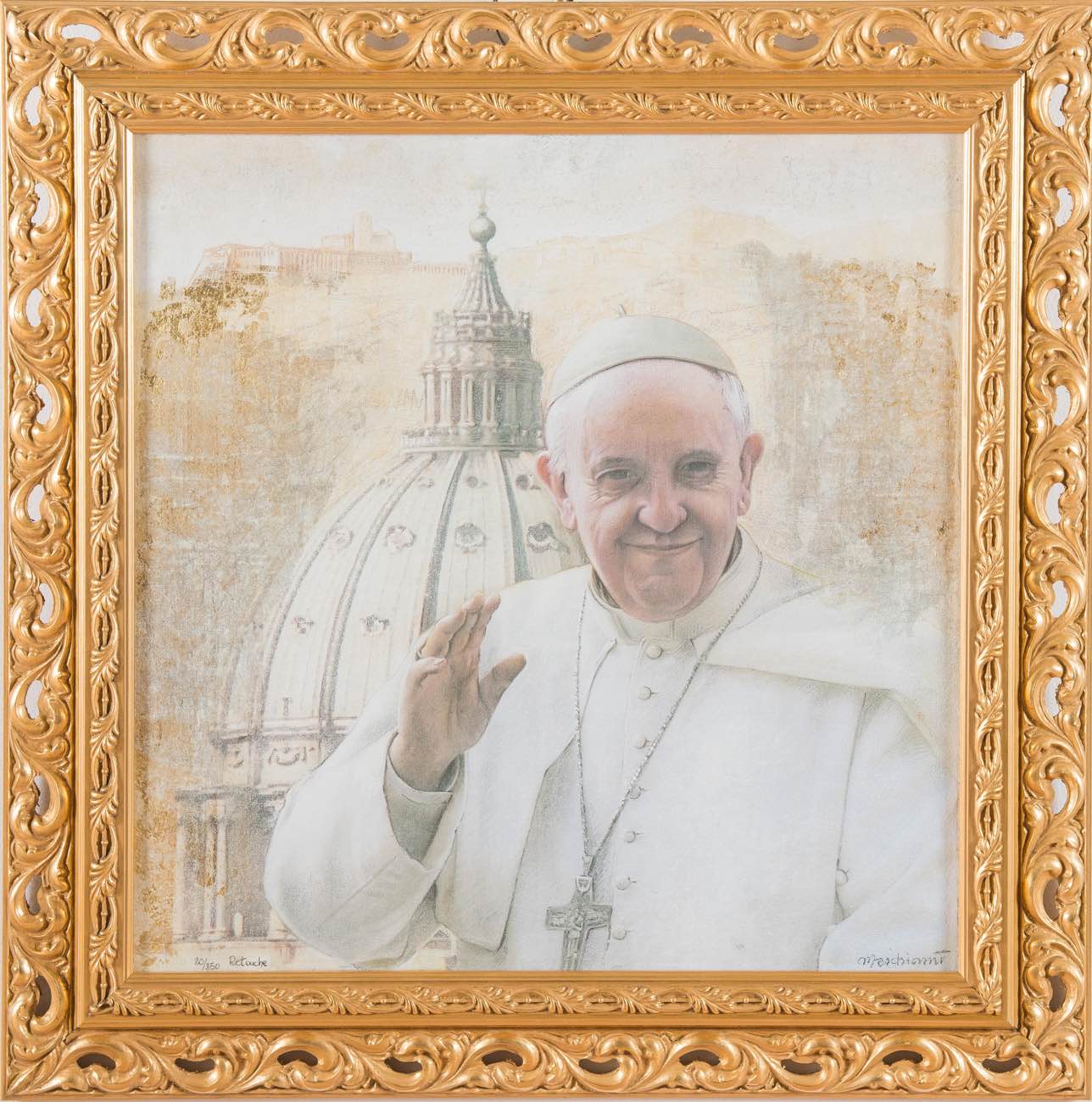 Elvio Marchionni (Spello 1944), “Misericordia”. Serigrafia su tela ritoccata dall’artista, firma in basso a destra Marchionni, numero di tiratura in basso a sinistra 20/250 retouche, H cm 60x62 Opera accompagnata da Certificato di Autenticità dell’artista.