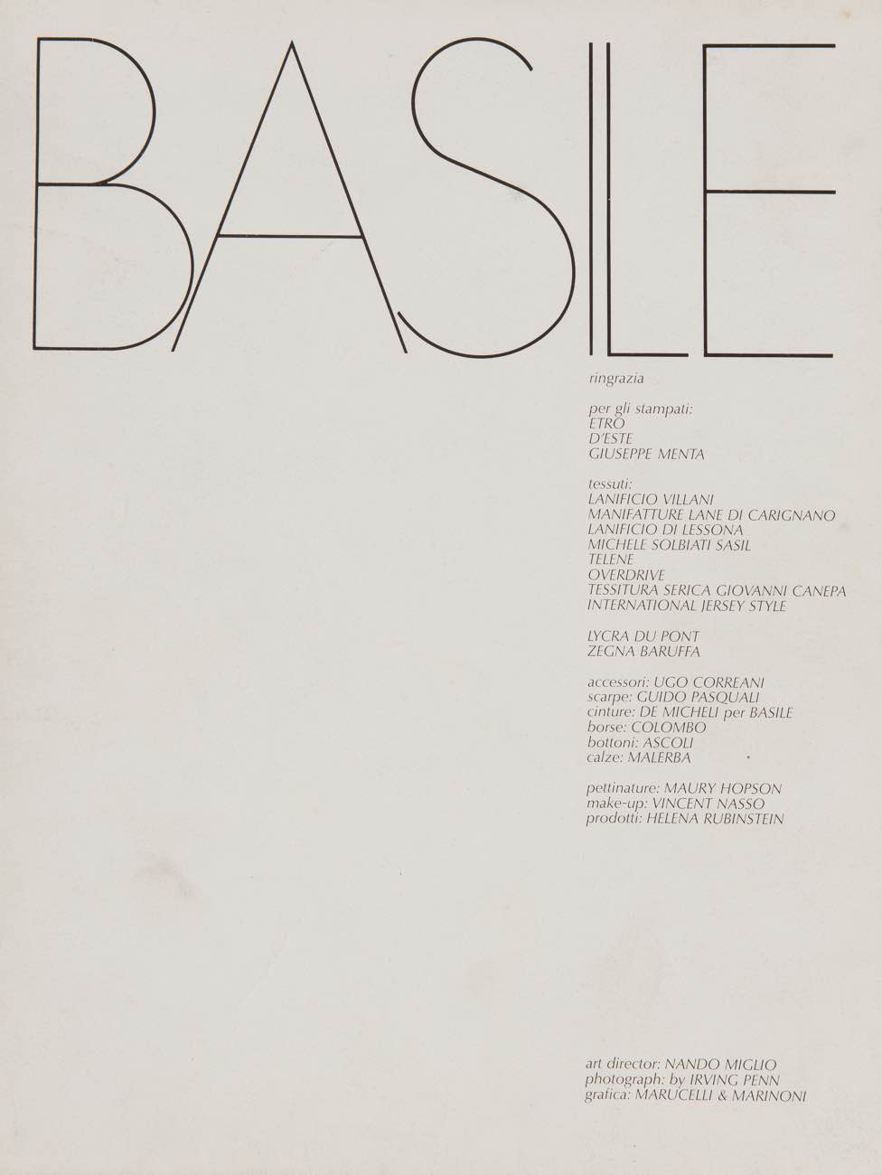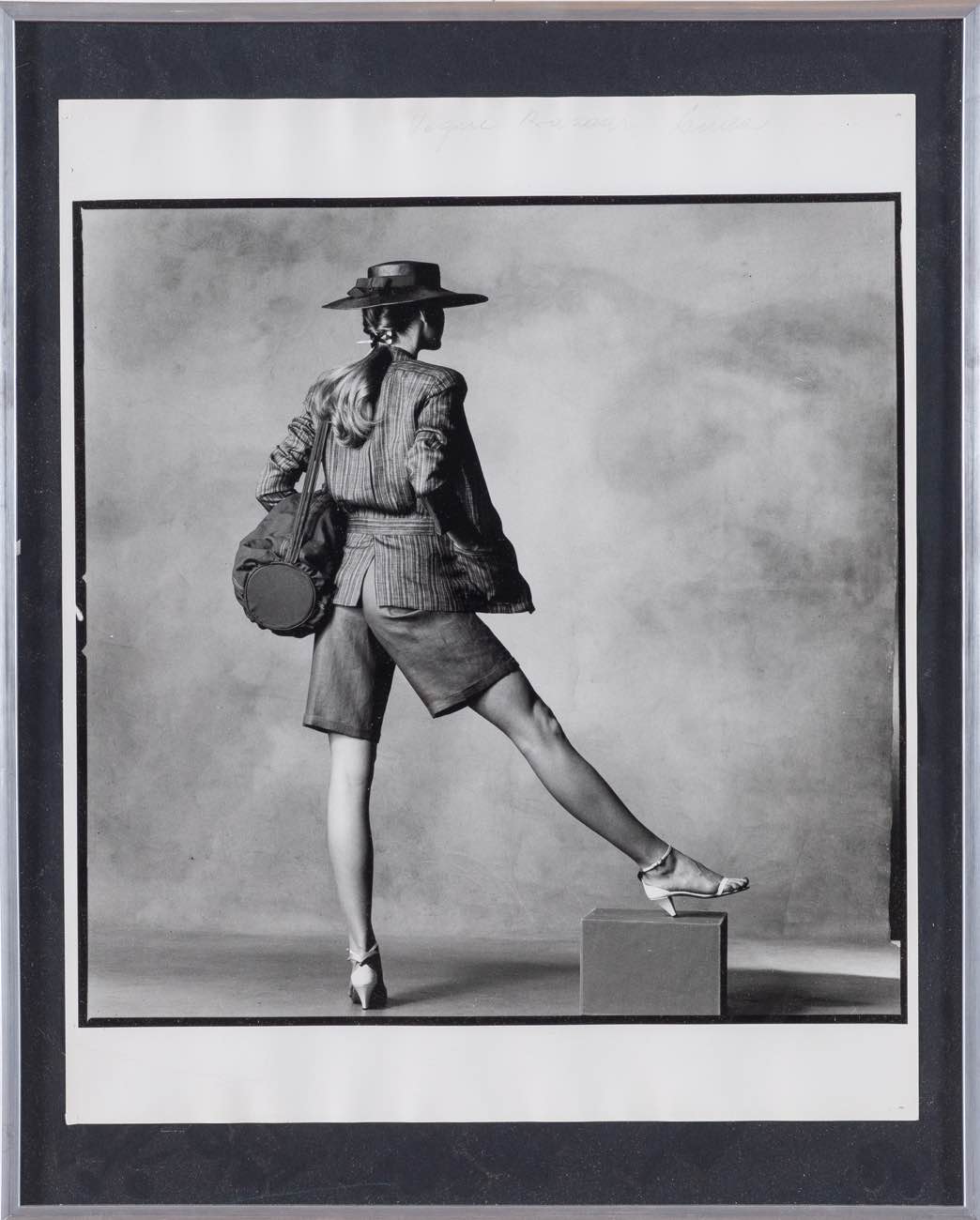 Irving Penn (Plainfield 1917 - New York 2009), “Campagna Basile”, 1989. Stampa fotografica vintage alla gelatina sali d'argento, in alto iscrizione a matita, H cm 35x35 Bibliografia di riferimento: Catalogo Basile Estate 1989. Al verso a matita '404’ probabilmente di pugno di Irving Penn.