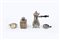 -Calamaio, punzoni non identificati, con boccetta in vetro, coperchio e piattino in argento peso lordo gr. 717.5