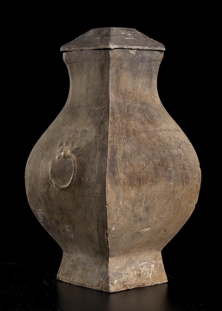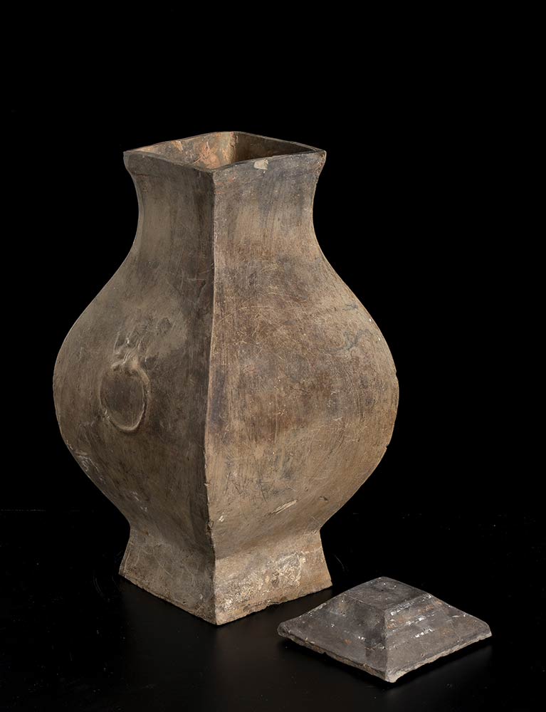 Lotto 7 | VASO IN CERAMICA CON COPERCHIO, FANGHU<br>Cina, stile della dinastia Han