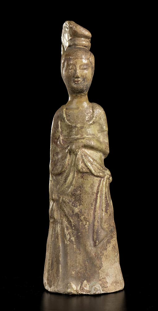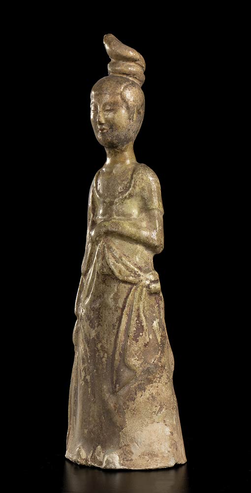 FIGURA FEMMINILE IN CERAMICA INVETRIATA<br>Cina, stile della dinastia Tang