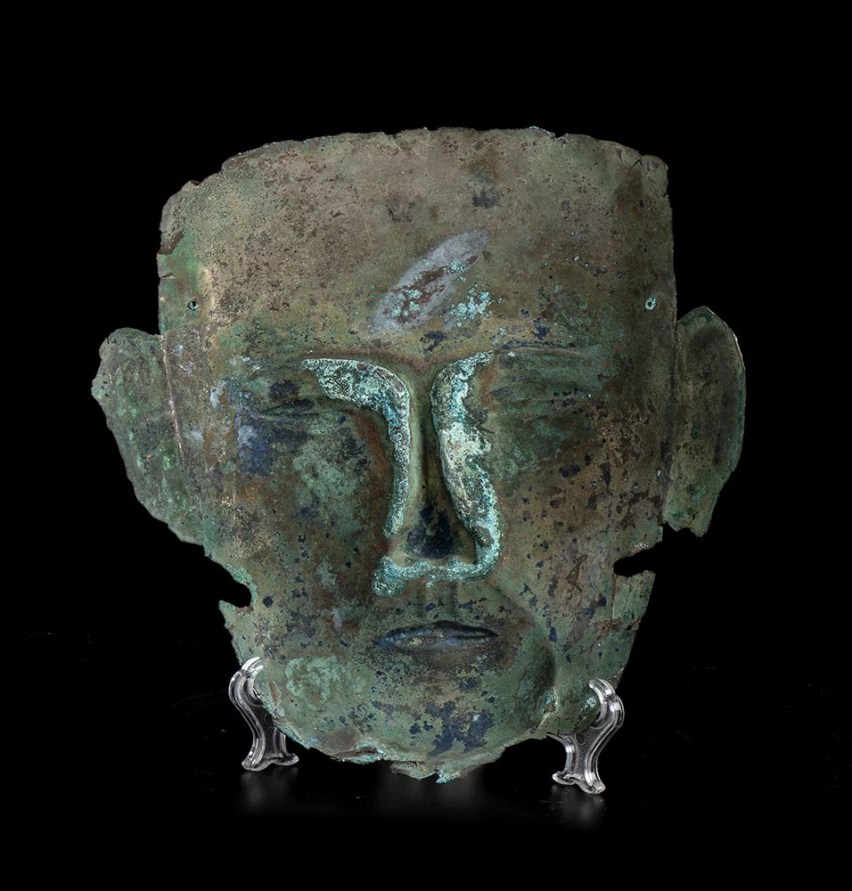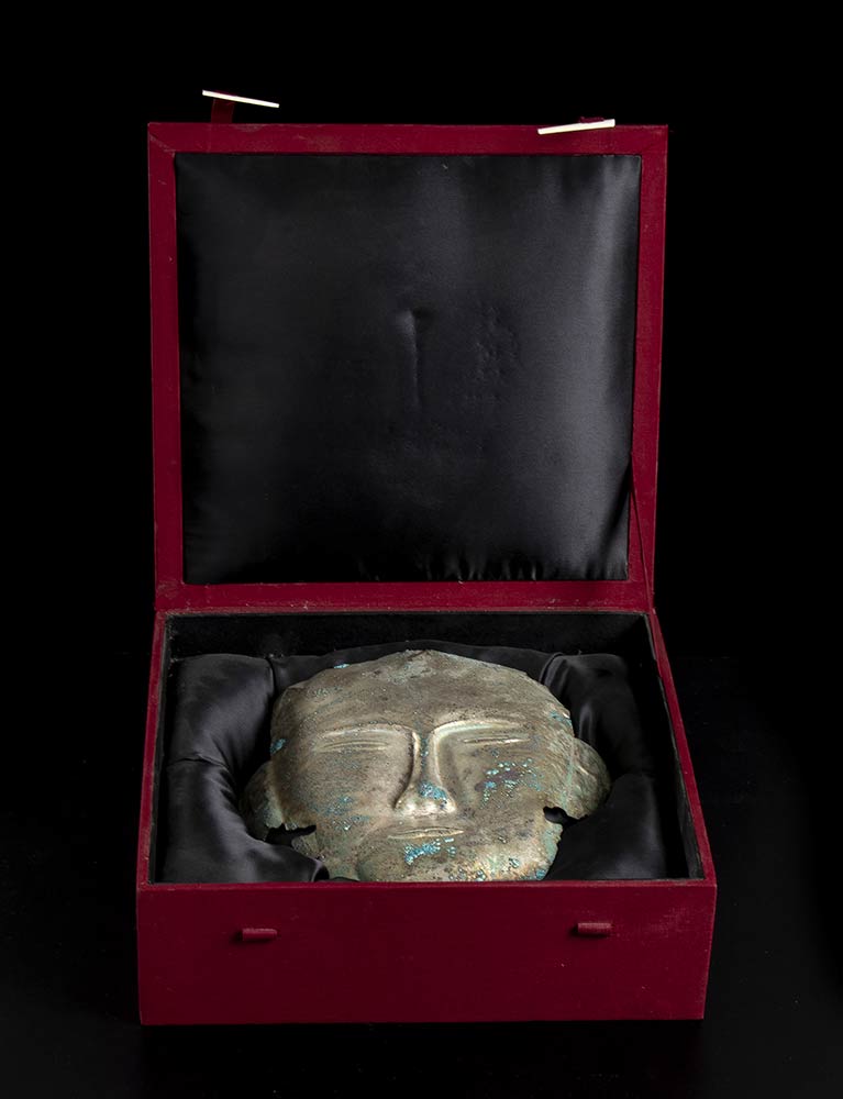MASCHERA FUNERARIA IN ARGENTO<br>Cina, dinastia Liao