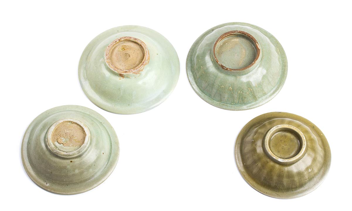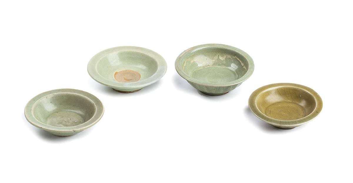 QUATTRO PIATTINI CON INVETRIATURA CÉLADON<br>Cina, dinastia Song/ Yuan