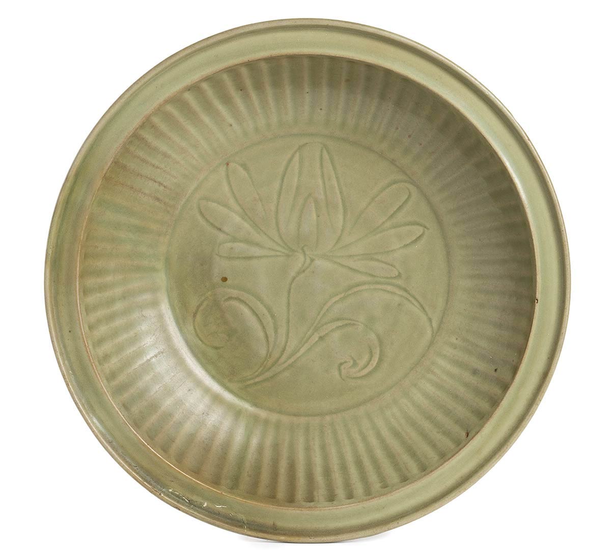 PIATTO IN CERAMICA DI LONGQUAN CON INVETRIATURA CÉLADON<br>Cina, dinastia Yuan