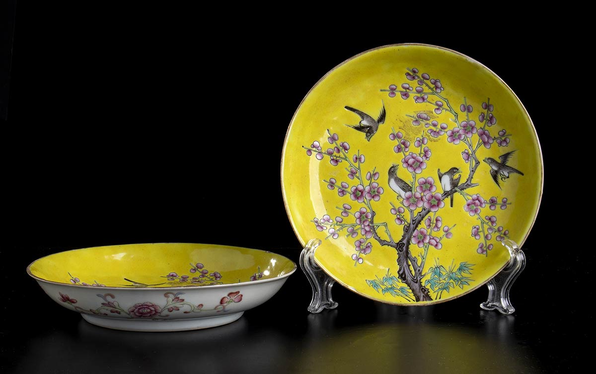 COPPIA DI PIATTINI IN PORCELLANA<br>Cina, marchio del periodo Guangxu