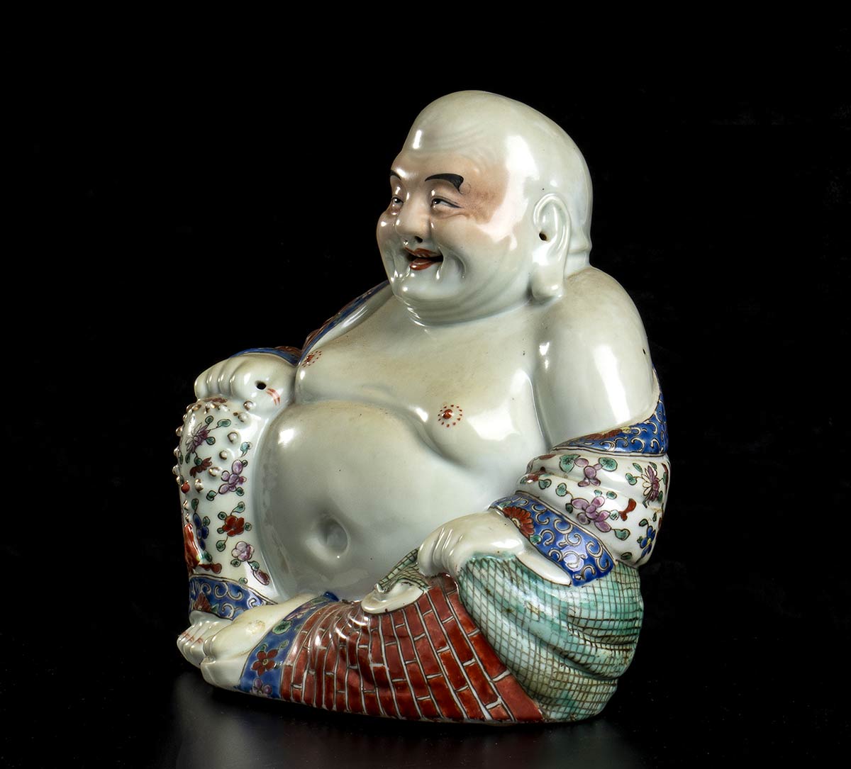 BUDAI IN PORCELLANA CON DECORO POLICROMO