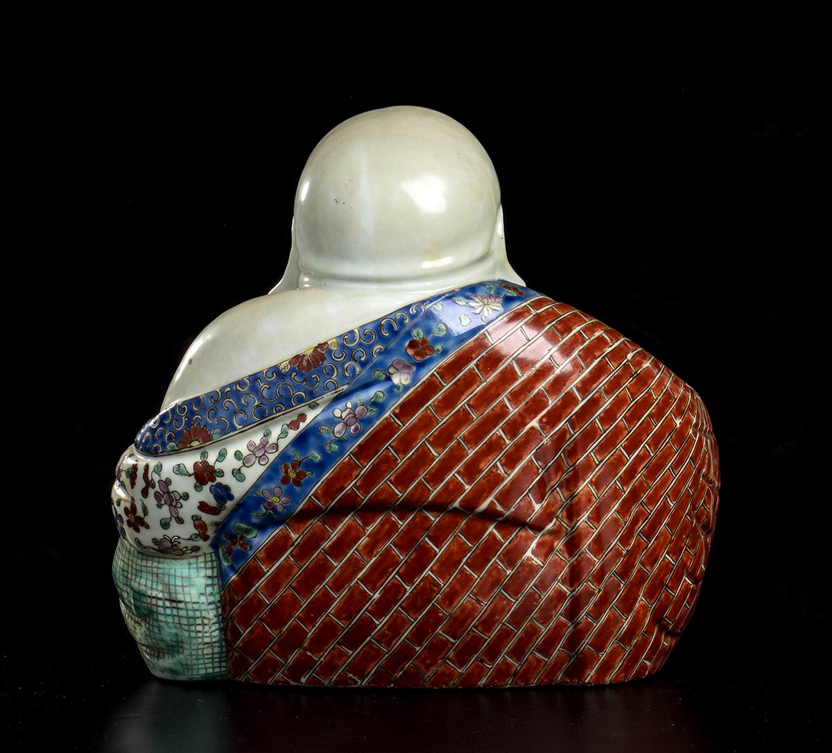BUDAI IN PORCELLANA CON DECORO POLICROMO<br>Cina, XX secolo