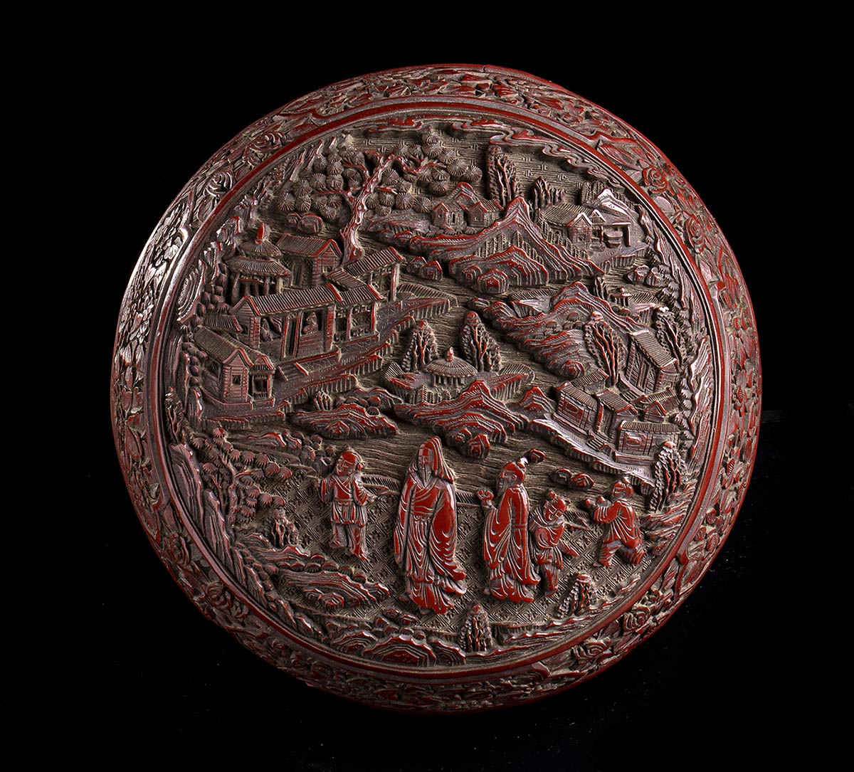 SCATOLA CIRCOLARE CON COPERCHIO IN LACCA<br>Cina, XIX-XX secolo