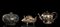 Entrambe le teiere decorate sull'esterno a oro e smalti policromi con figure, motivi floreali e tappeti geometrici.