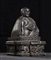 Il religioso raffigurato seduto su un basamento a sezione rettangolare decorato a rilievo su tre lati con figure e animali mitologici, vestito di ampio abito, il volto sorridente dal capo rasato.