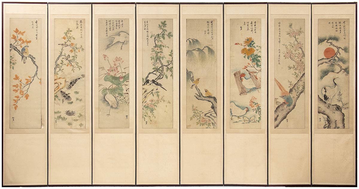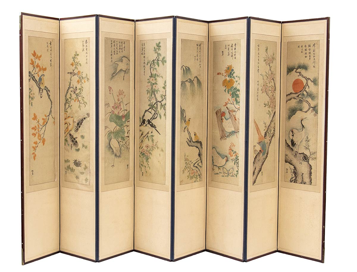 PARAVENTO A OTTO ANTE CON 'FIORI E UCCELLI'<br>Corea, inizio del XX secolo<br><br>