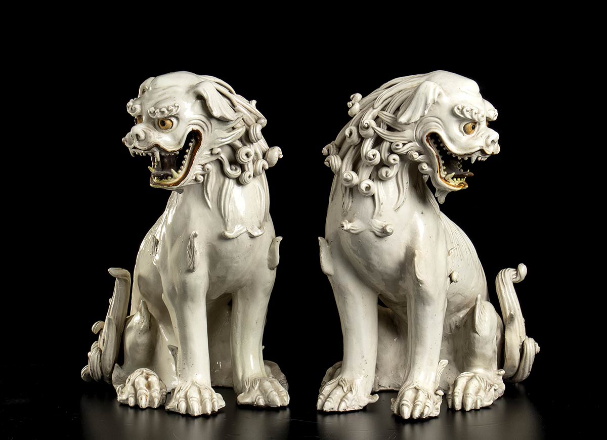 COPPIA DI LEONI BUDDHISTI IN CERAMICA INVETRIATA