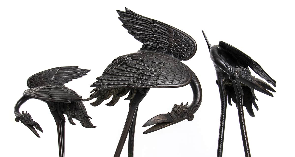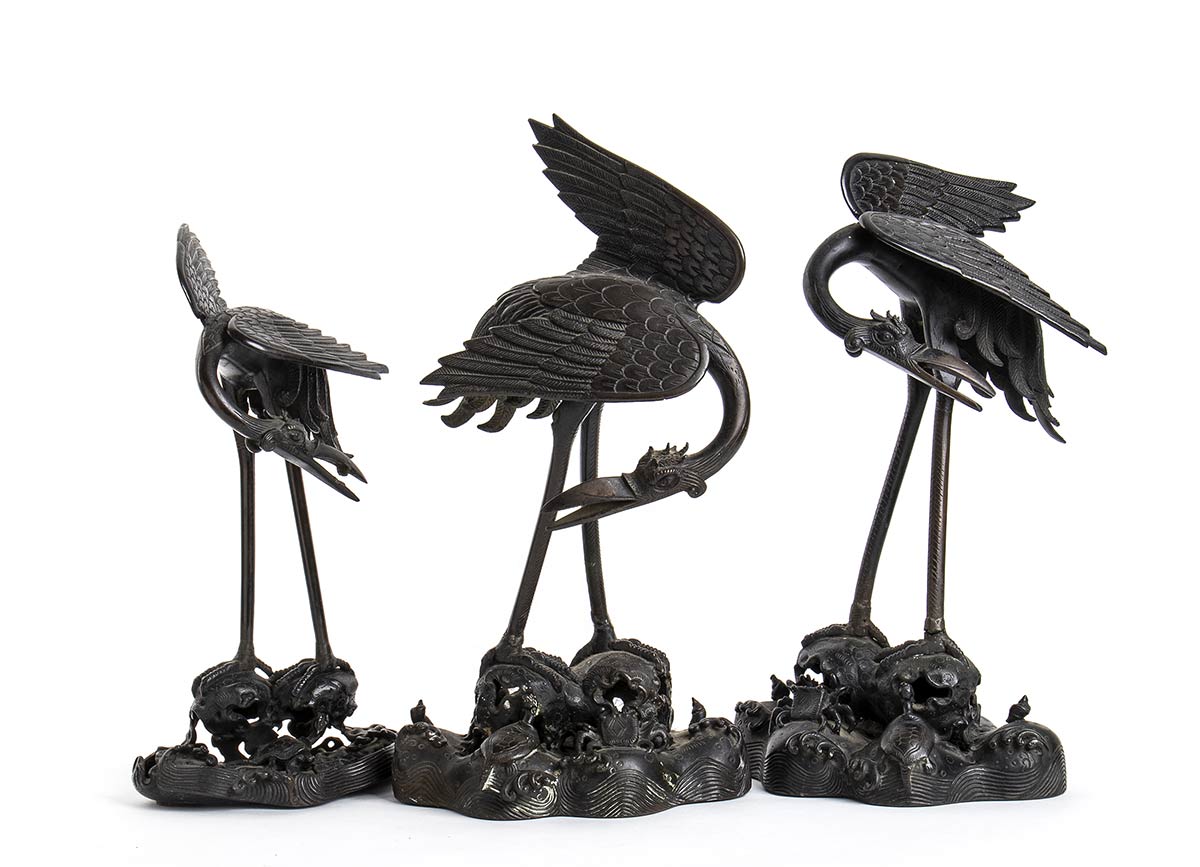 TRE GRU IN BRONZO<br>Giappone, periodo Meiji<br>