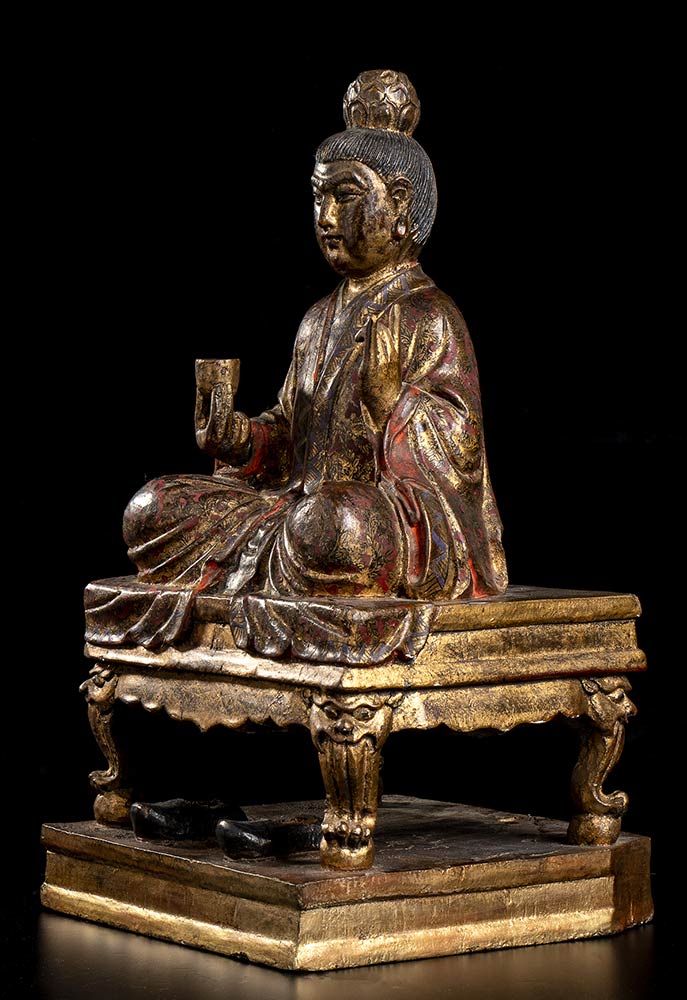 DIVINITÀ BUDDHISTA IN LEGNO<br>Giappone, XIX secolo<br>