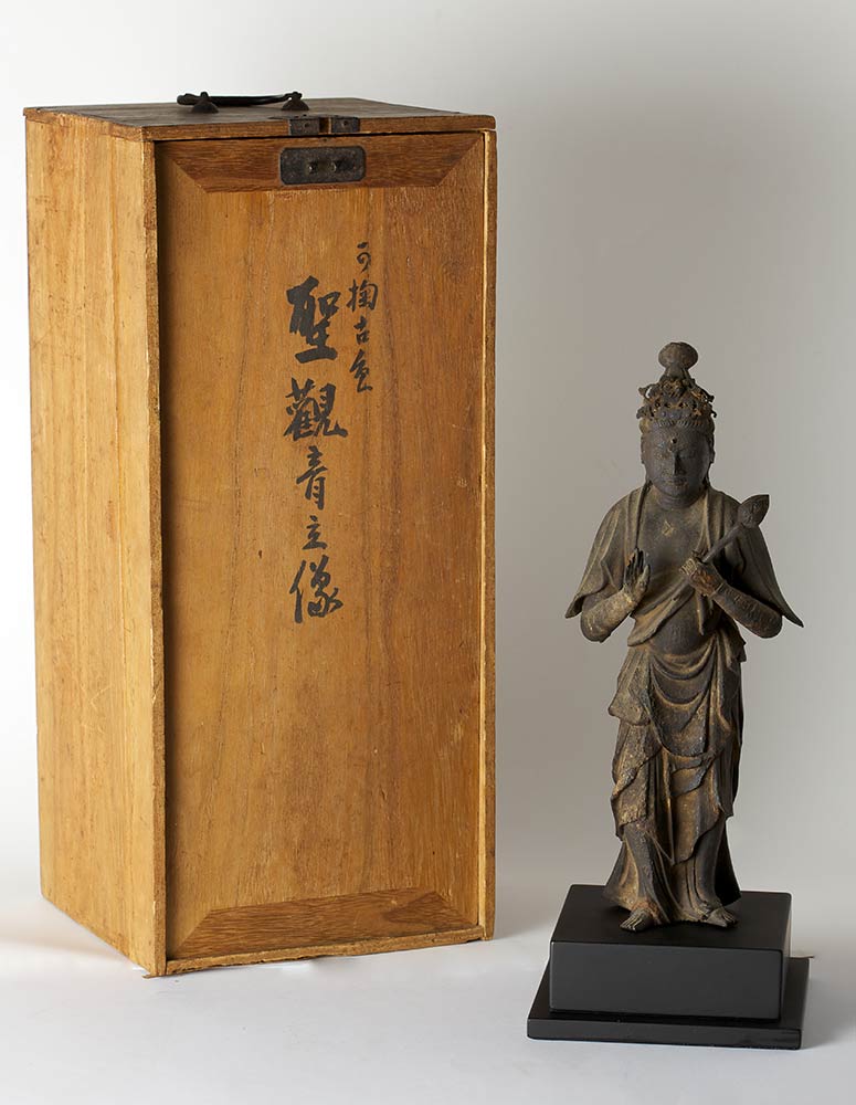 SCULTURA IN LEGNO CON SHO KANNON<br>Giappone, periodo Nanbokucho, XIV secolo<br>