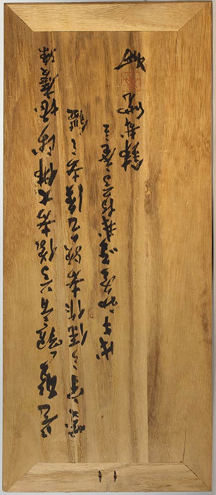 Sulla scatola è riportata un'iscrizione a firma di Kano Tessai (1845-1925) e datata 1918, nel quale si fa riferimento quale autore dell'opera a Keishu, grande scultore nipote di Tankei e attivo nel periodo in cui effettivamente quest'opera fu eseguita.