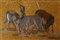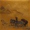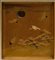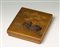Di forma all'incirca quadrata, l'intera superficie finemente laccata e dorata con diverse tecniche del maki-e (“pittura a oro cosparso”), l'esterno del coperchio con tre cavalli in un paesaggio con un albero di pruno fiorito, l'interno con albero di pino, luna piena e gru, una delle quali realizzata come applicazione di metallo dorato, il contenitore ha vassoio con albero di pino, vano con pietra per sciogliere l'inchiostro e contagocce in metallo di forma stilizzata.
