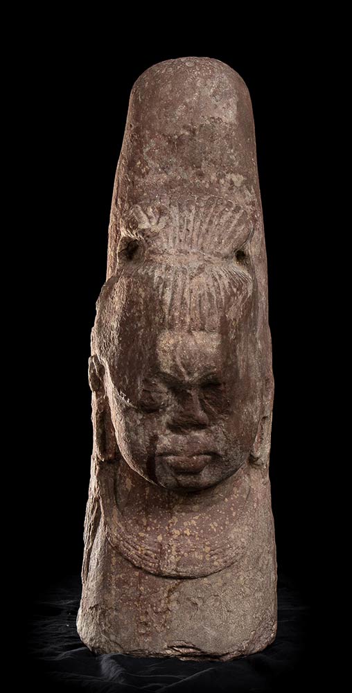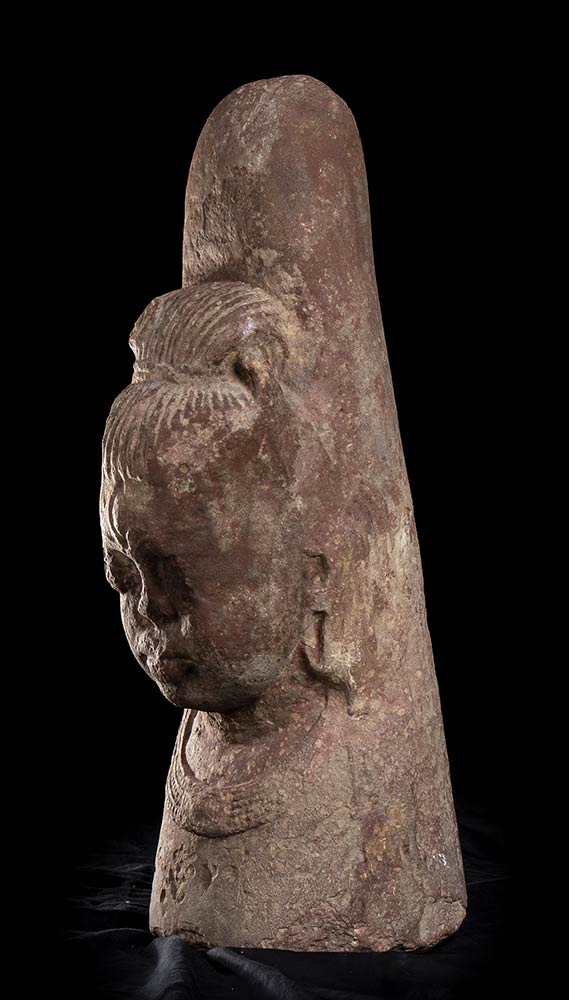 LINGA CON IL VOLTO DI SHIVA IN PIETRA, EKMUKHALINGA<br>India, Mathura, stile del periodo Kushana