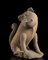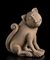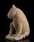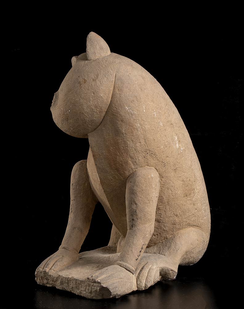 Seduto sulle zampe posteriori, l'animale ha il capo accentuatamente piegato verso destra.
