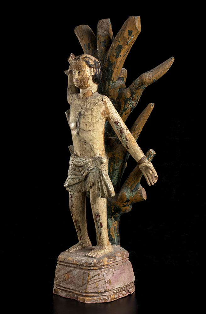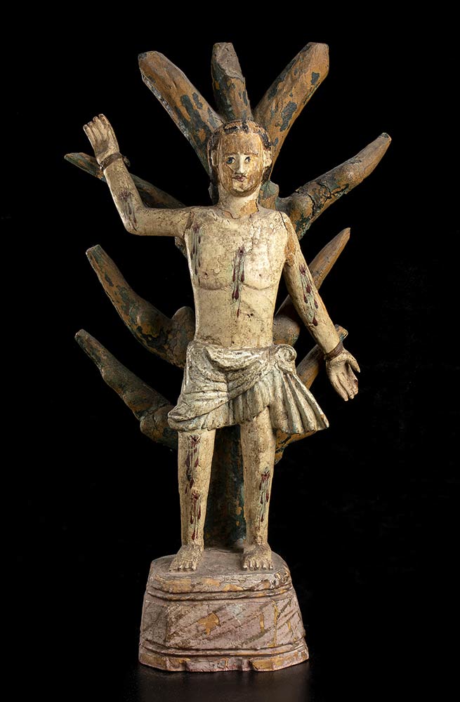 SAN SEBASTIANO IN LEGNO DIPINTO<br>Indo-portoghese, XVIII-XIX secolo