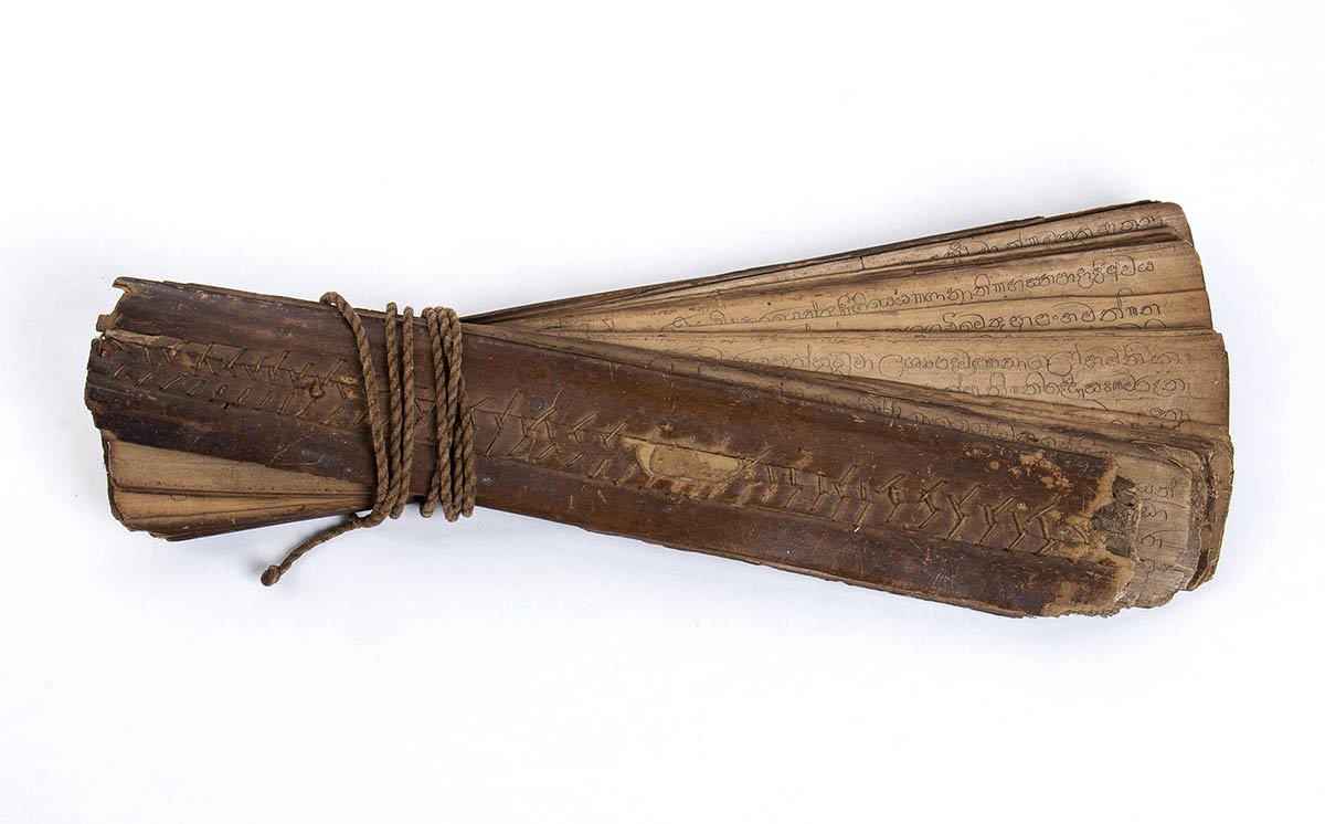 Copertina in legno, i fogli in foglia di palma.
