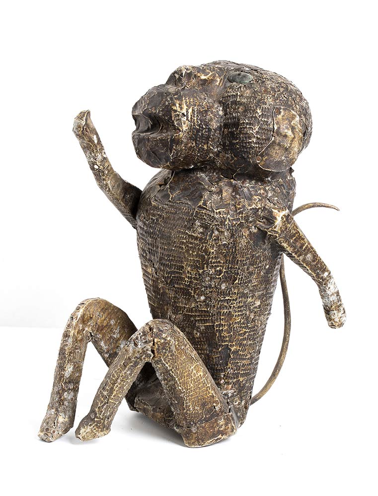 Lotto 275 | BABBUINO IN LEGNO E LAMINA DI METALLO<br>Gabon, Ambete