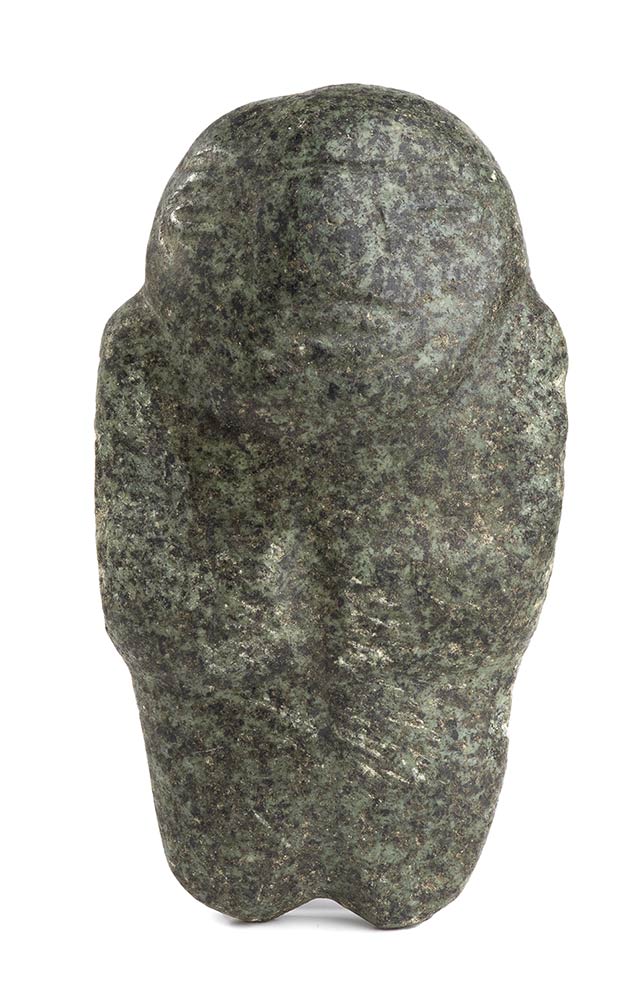 UNA MASCHERA IN GIADA E UNA FIGURA IN PIETRA<br>Stile Olmeco