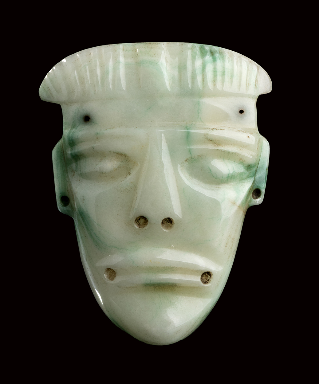 UNA MASCHERA IN GIADA E UNA FIGURA IN PIETRA