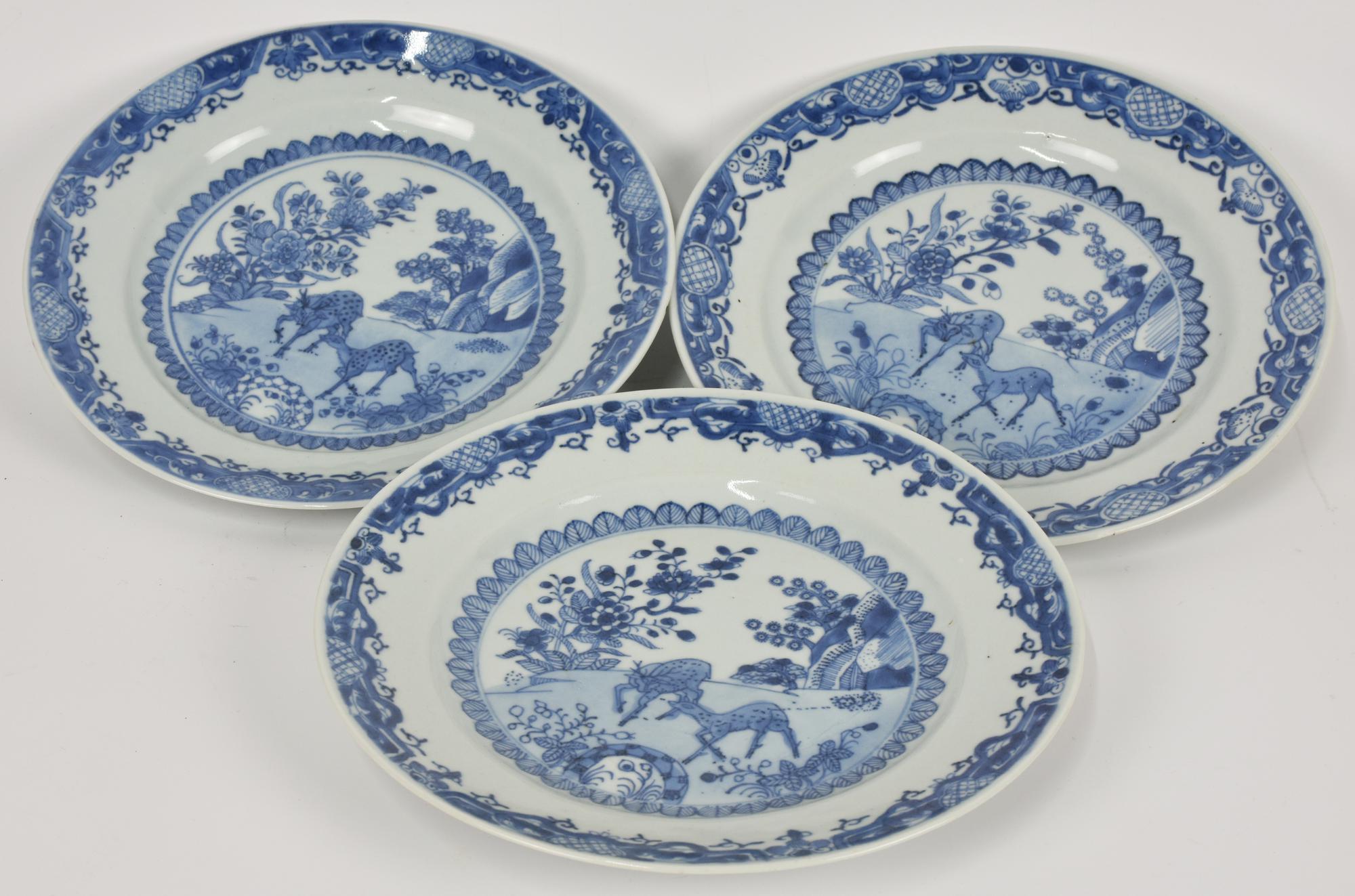 LOTTO DI TRE PIATTI IN PORCELLANA Compagnia delle Indie finemente decorati...