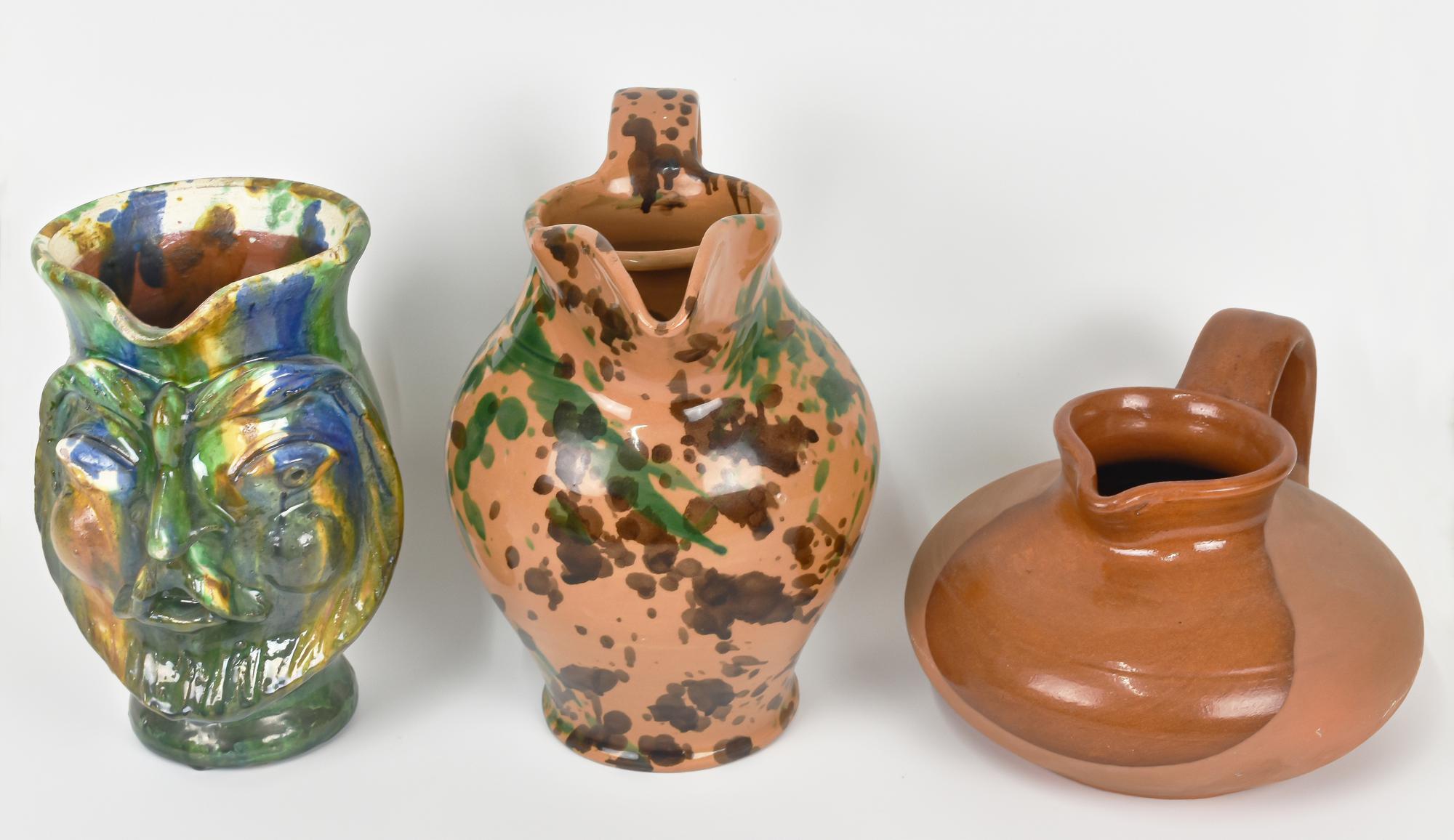 LOTTO DI TRE BROCCHE in maiolica h da cm 13 a cm 23 Italia, XX sec. Difetti