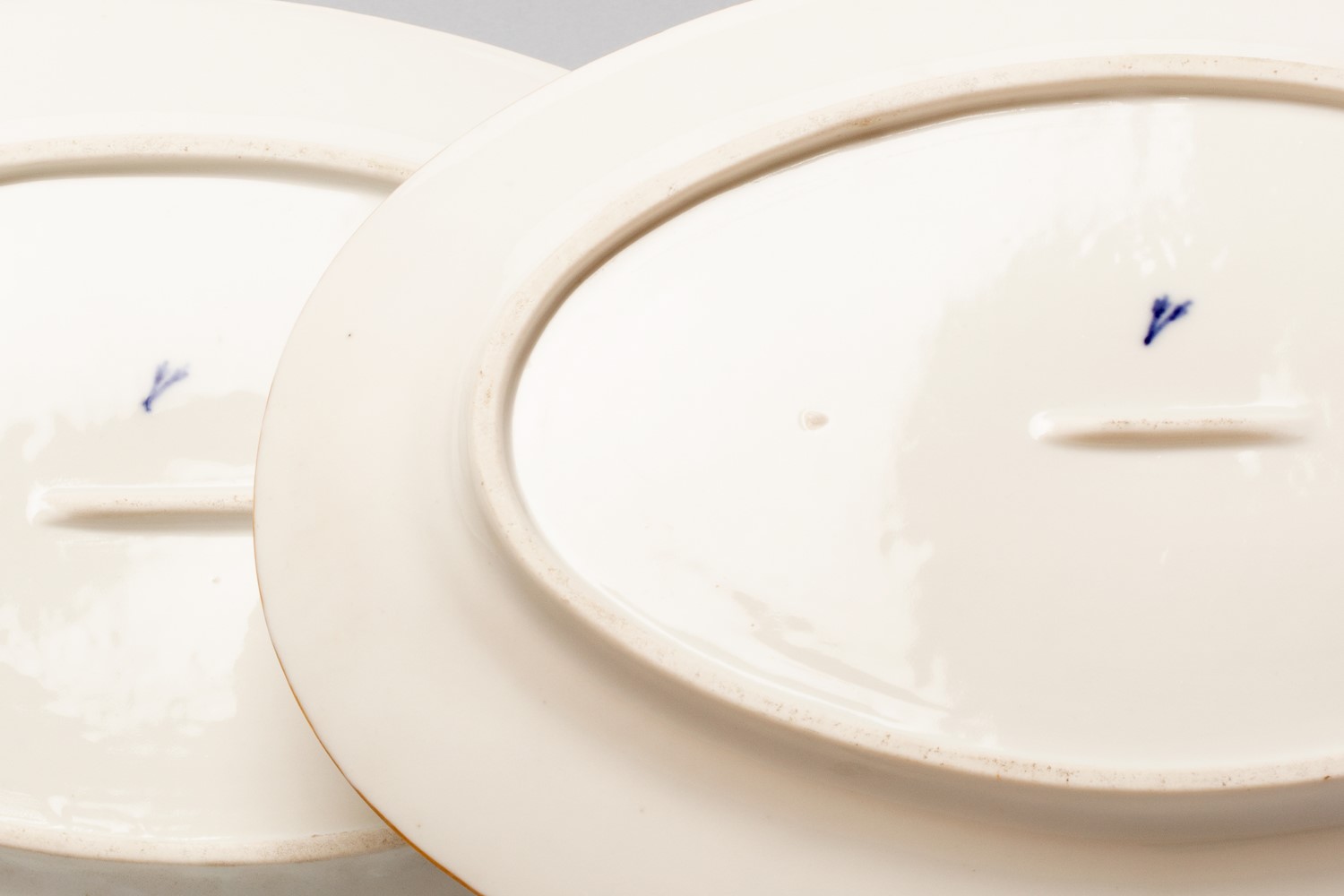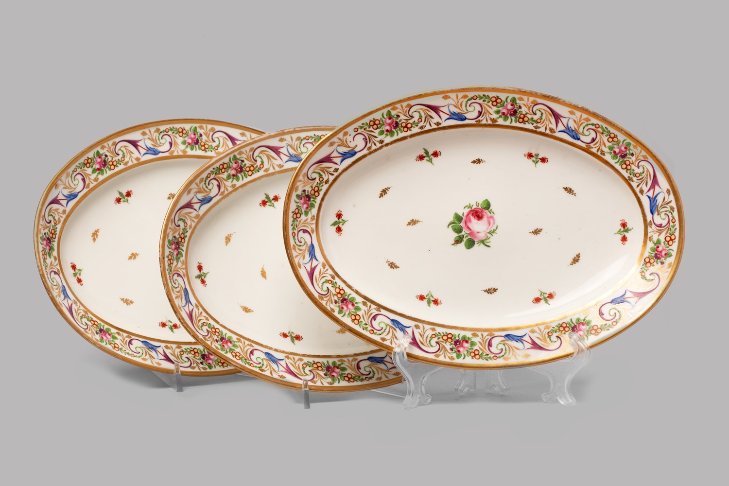 Lotto 286 | Lotto di tre piatti da portata ovali in porcellana con decoro a roselline e volute
