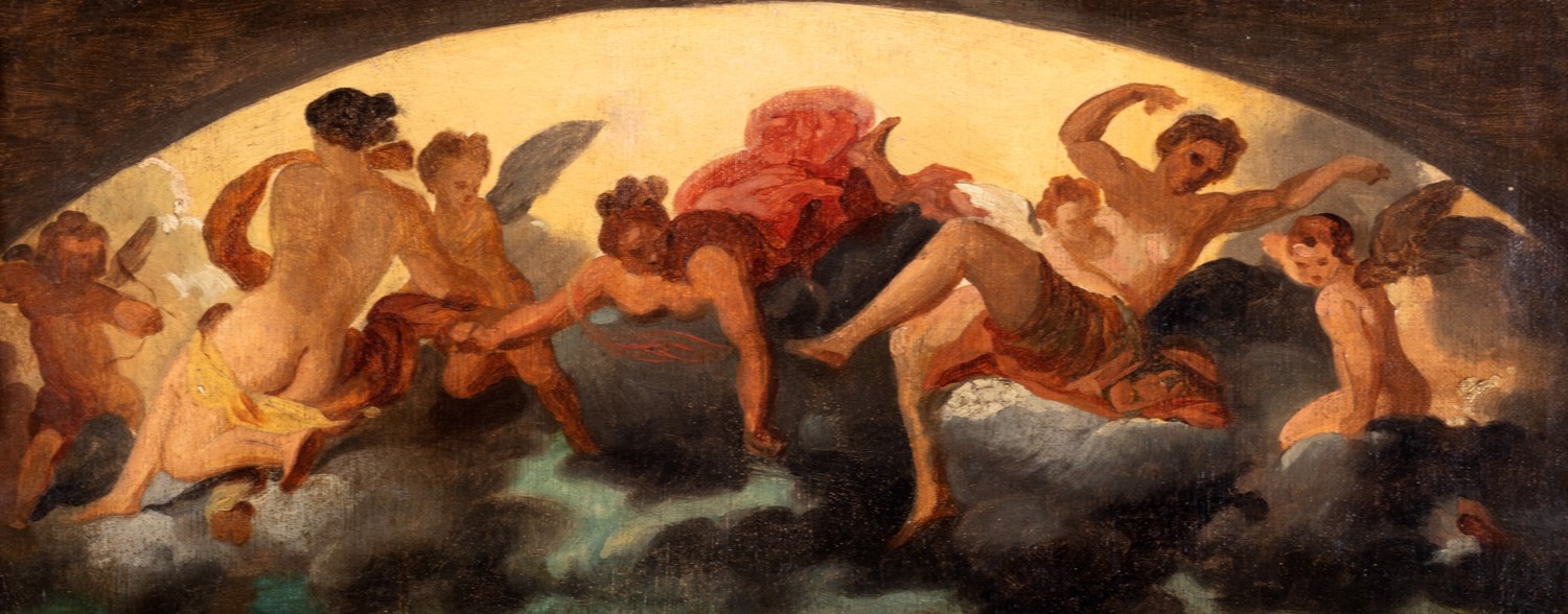 Lotto 312 | Pittore accademico attivo nella prima metà del secolo XIX - Due studi per lunette raffiguranti figure femminili allegoriche danzanti