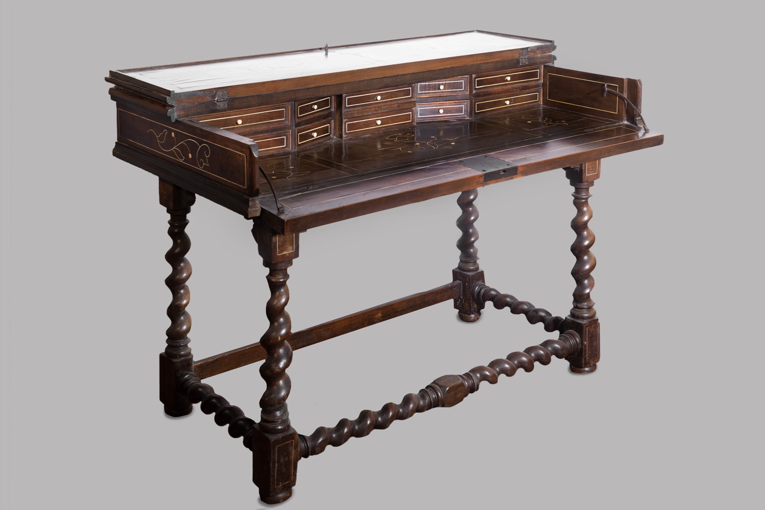 Scrivania San Filippo, con gambe e traverse a tortiglione, fine secolo XVII - inizi secolo XVIII