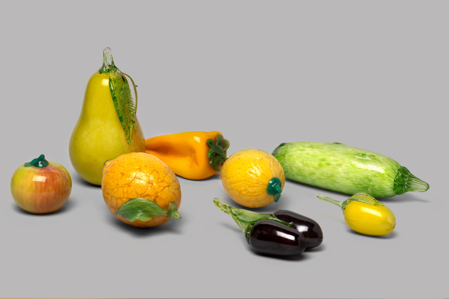 Lotto di otto frutti e ortaggi in vetro di Murano, secolo XX