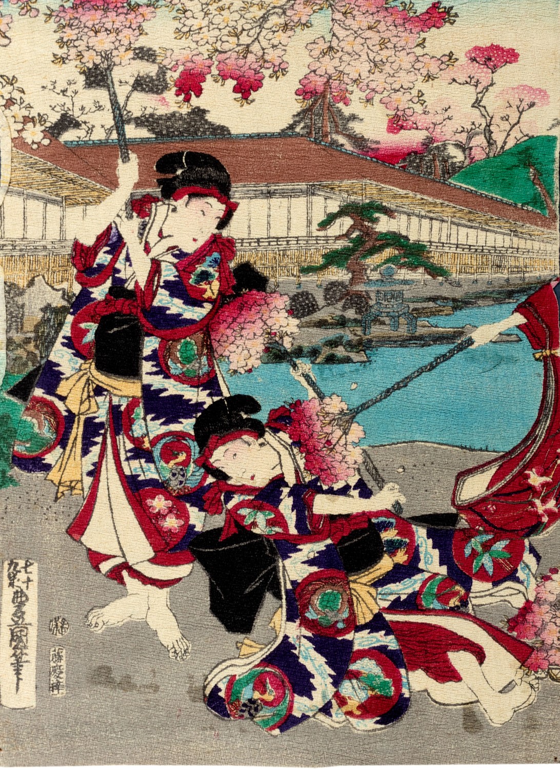 Stampa raffigurante donne in un giardino, Giappone periodo Meiji