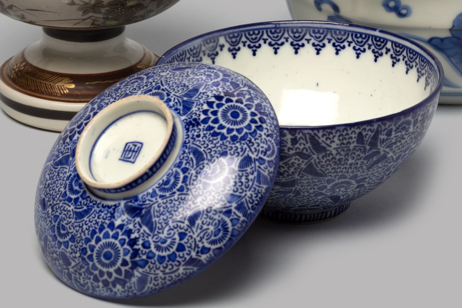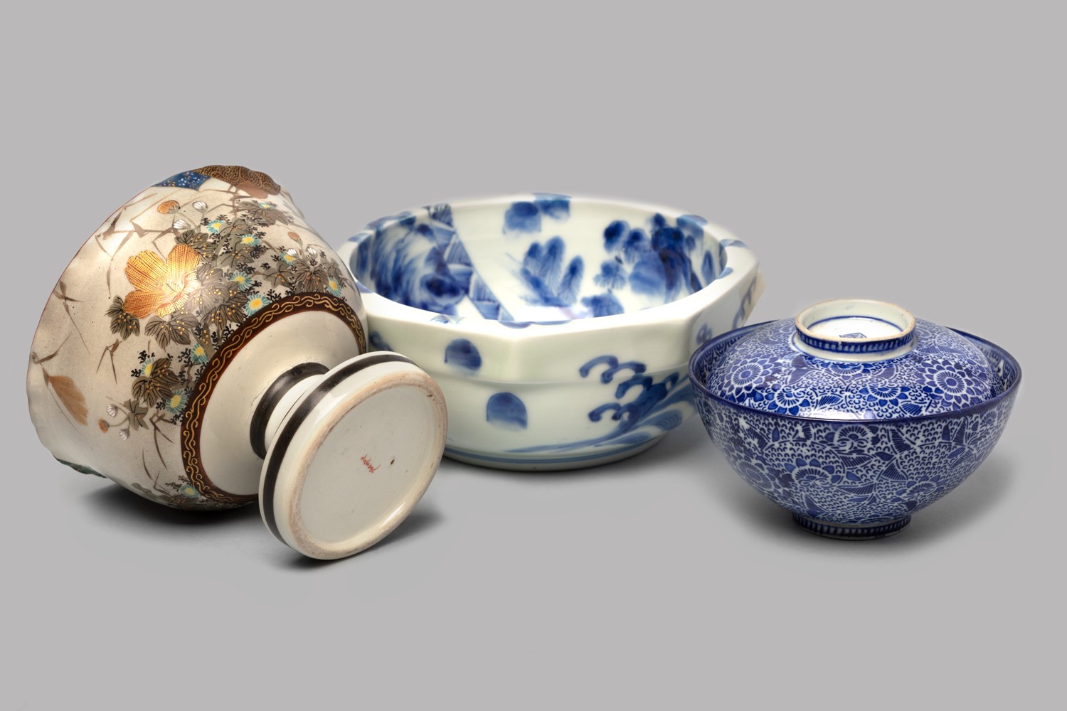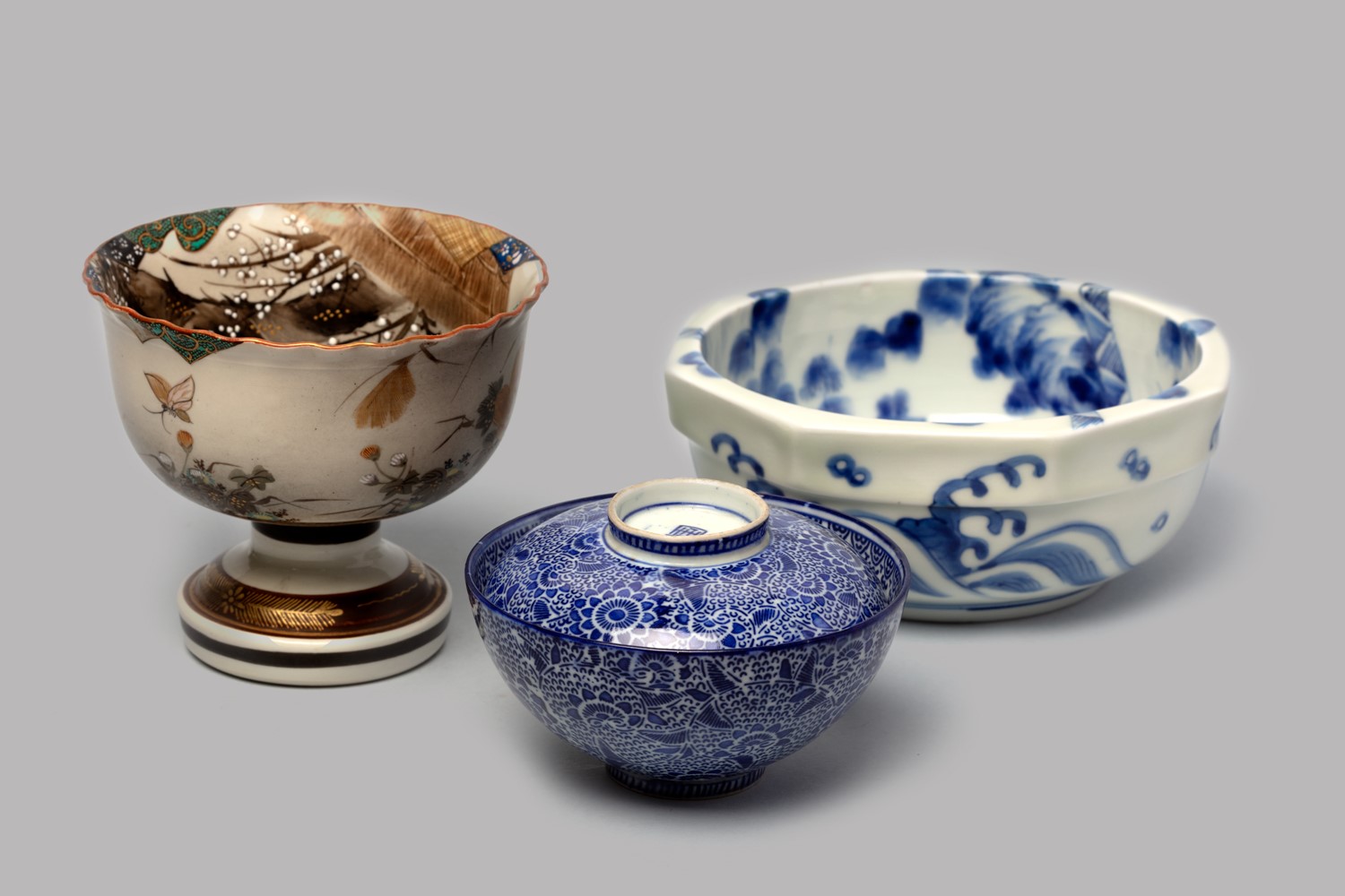 Lotto di tre ciotole in porcellana, Giappone secoli XIX-XX