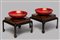 Coppia di tazzine da sakè per matrimonio, in lacca rossa e oro, con porta tazzina in lacca nera e oro, Giappone periodo Meiji