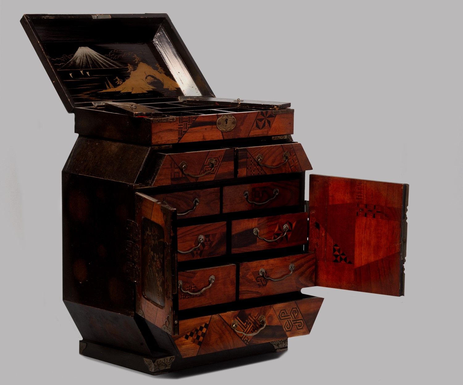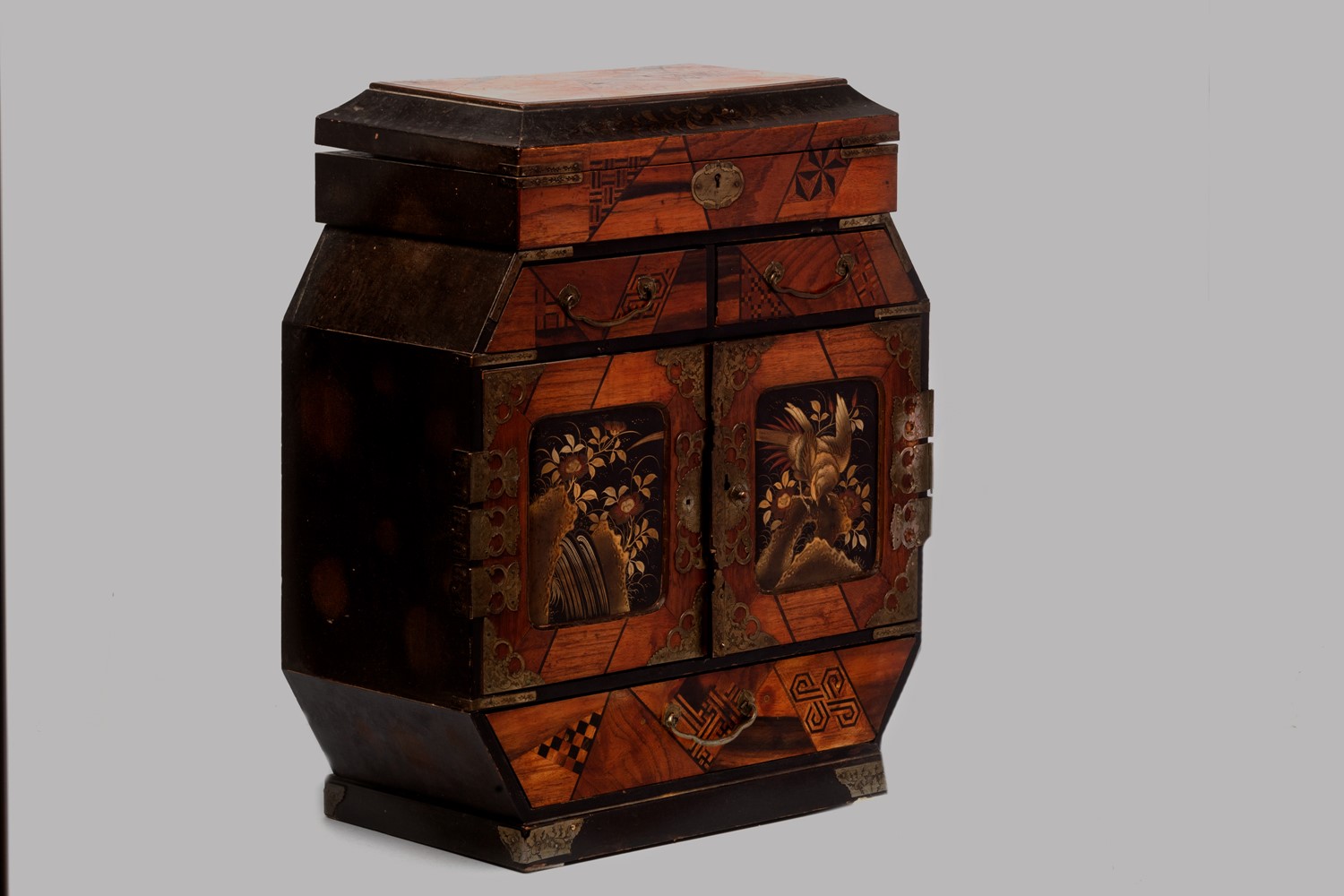 Lotto 376 | Stipo in legno intarsiato con pannelli in lacca e oro, Giappone periodo Meiji